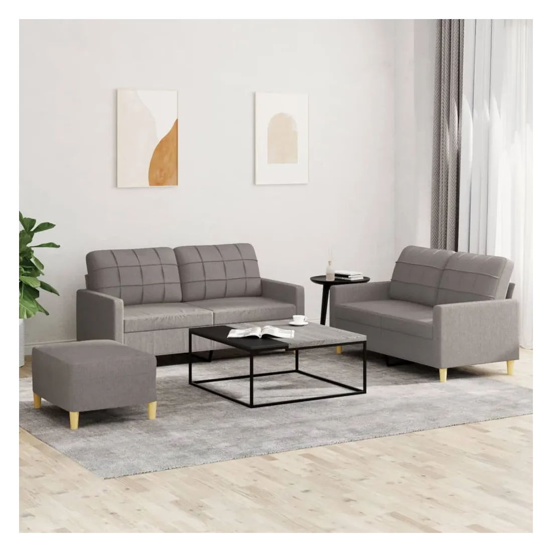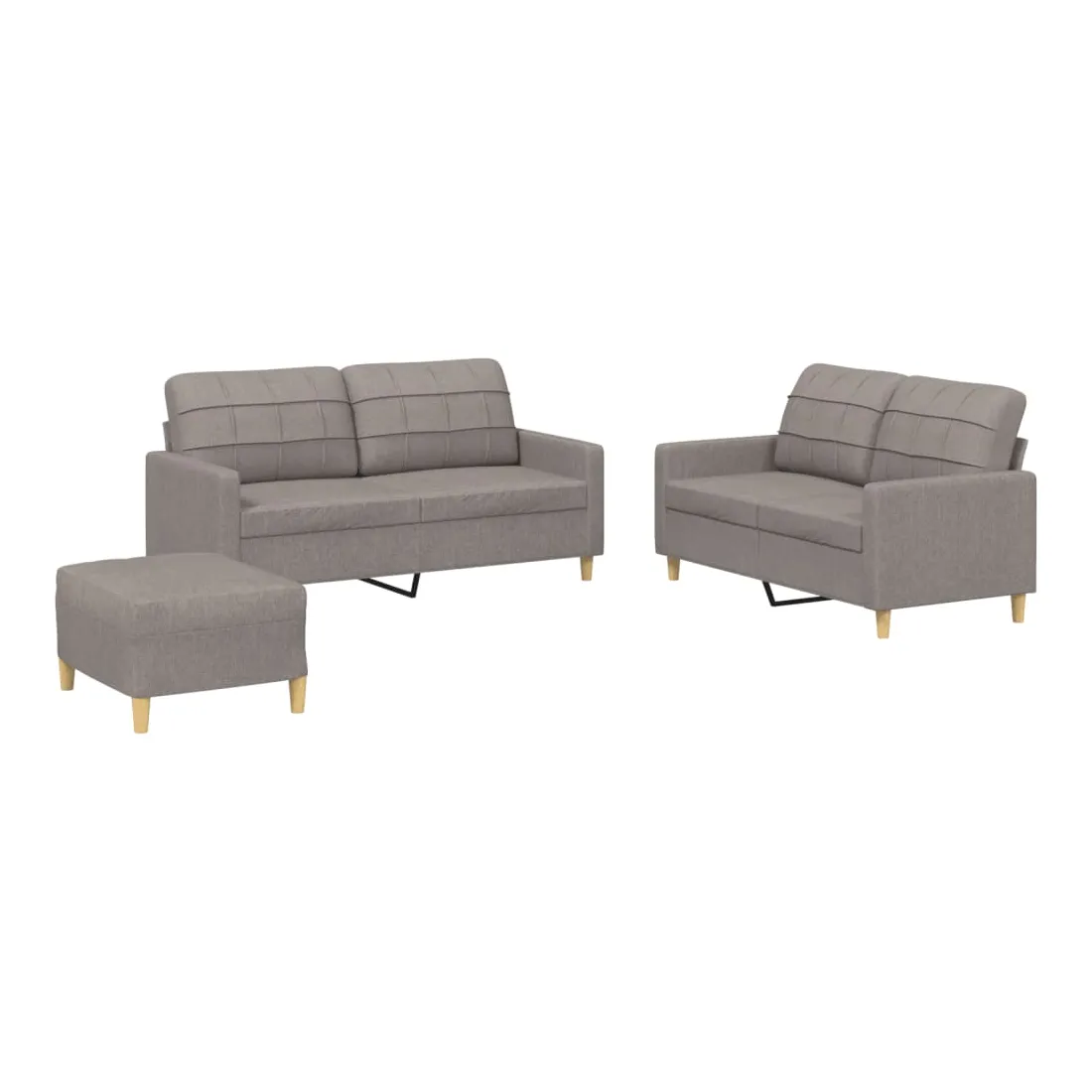 Cet ensemble de canapés est un excellent endroit pour discuter, lire, regarder la télévision ou simplement vous détendre. Il est destiné à être un point central de votre maison. Tissu durable : le tissu présente un aspect simple et épuré tout en restant respirant et durable.Structure robuste et stable : la structure en contreplaqué et en métal du canapé assure robustesse et stabilité.Expérience d'assise confortable : le canapé est très confortable avec le siège, les accoudoirs et les oreillers de dossier bien rembourrés.Pouf polyvalent : ce repose-pied convient pour reposer vos pieds lorsque vous êtes allongé dans un canapé, ou pour vous offrir un siège supplémentaire dans votre pièce. De plus, le design simple et la taille compacte le rendent idéal pour presque tous vos espaces de vie.
