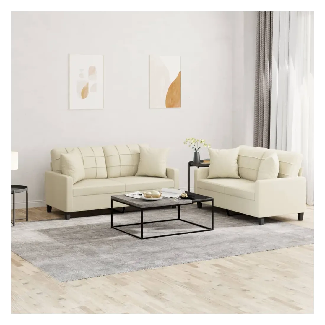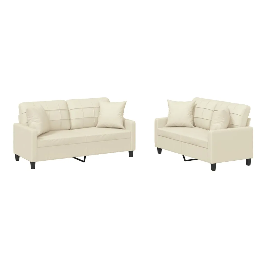 Cet ensemble de canapés est un excellent endroit pour discuter, lire, regarder la télévision ou simplement vous détendre. Il est destiné à être un point central de votre maison. Similicuir durable : le similicuir de qualité supérieure est un matériau très durable. Il est résistant aux taches, ce qui le rend facile à nettoyer avec un chiffon humide. La surface lisse donne également un aspect luxueux et la beauté du cuir véritable.Structure robuste et stable : la structure en contreplaqué et en métal du canapé assure robustesse et stabilité.Expérience d'assise confortable : le canapé est très confortable avec le siège, les accoudoirs et les oreillers de dossier bien rembourrés.Oreillers de canapé pratiques : ces oreillers décoratifs carrés non seulement embellissent votre décor, mais ils peuvent également apporter un confort supplémentaire lorsque vous êtes assis ou allongé.