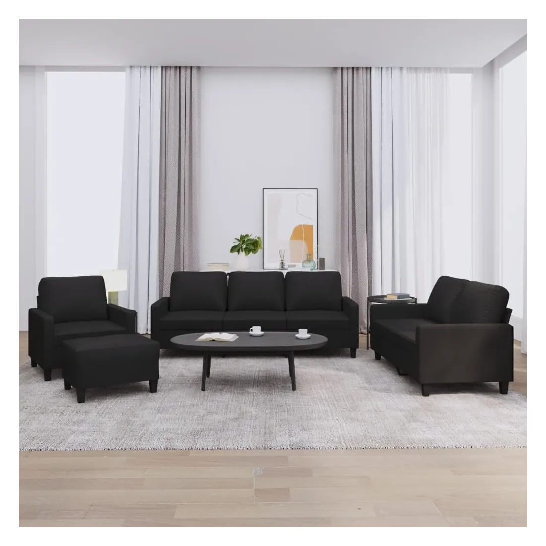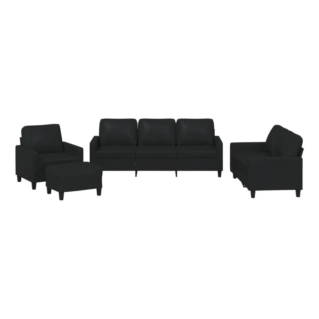 Cet ensemble de canapés est un excellent endroit pour discuter, lire, regarder la télévision ou simplement vous détendre. Il est destiné à être un point central de votre maison. Similicuir durable : le similicuir de qualité supérieure est un matériau très durable. Il est résistant aux taches, ce qui le rend facile à nettoyer avec un chiffon humide. La surface lisse donne également un aspect luxueux et la beauté du cuir véritable.Structure robuste et stable : la structure en contreplaqué et en métal du canapé assure robustesse et stabilité.Expérience d'assise confortable : le canapé est très confortable avec le siège, les accoudoirs et les oreillers de dossier bien rembourrés.Pouf polyvalent : ce repose-pied convient pour reposer vos pieds lorsque vous êtes allongé dans un canapé, ou pour vous offrir un siège supplémentaire dans votre pièce. De plus, le design simple et la taille compacte le rendent idéal pour presque tous vos espaces de vie.