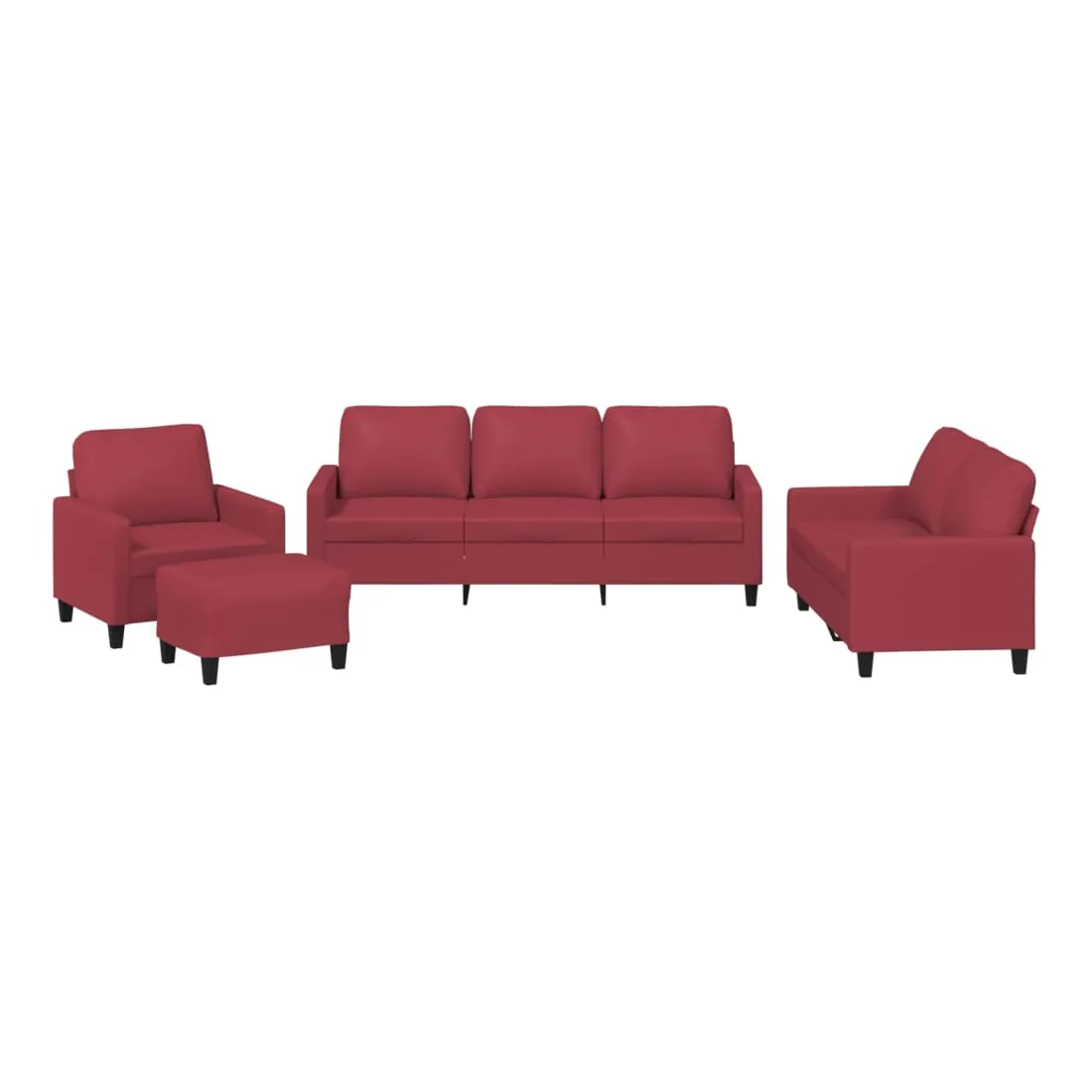 Ensemble de canapés 4 pcs et coussins Rouge bordeaux Similicuir