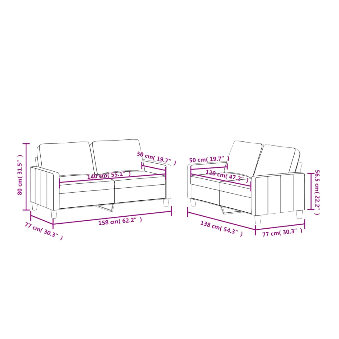 - 2 x canapé à 2 places