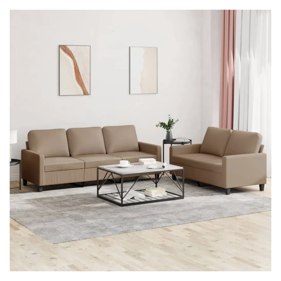 Cet ensemble de canapés est un excellent endroit pour discuter, lire, regarder la télévision ou simplement vous détendre. Il est destiné à être un point central de votre maison. Similicuir durable : le similicuir de qualité supérieure est un matériau très durable. Il est résistant aux taches, ce qui le rend facile à nettoyer avec un chiffon humide. La surface lisse donne également un aspect luxueux et la beauté du cuir véritable.Structure robuste et stable : la structure en contreplaqué et en métal du canapé assure robustesse et stabilité.Expérience d'assise confortable : le canapé est très confortable avec le siège, les accoudoirs et les oreillers de dossier bien rembourrés.Design accrocheur : doté d'un design simple mais moderne, ce siège de salon est destiné à attirer l'attention dans votre pièce.