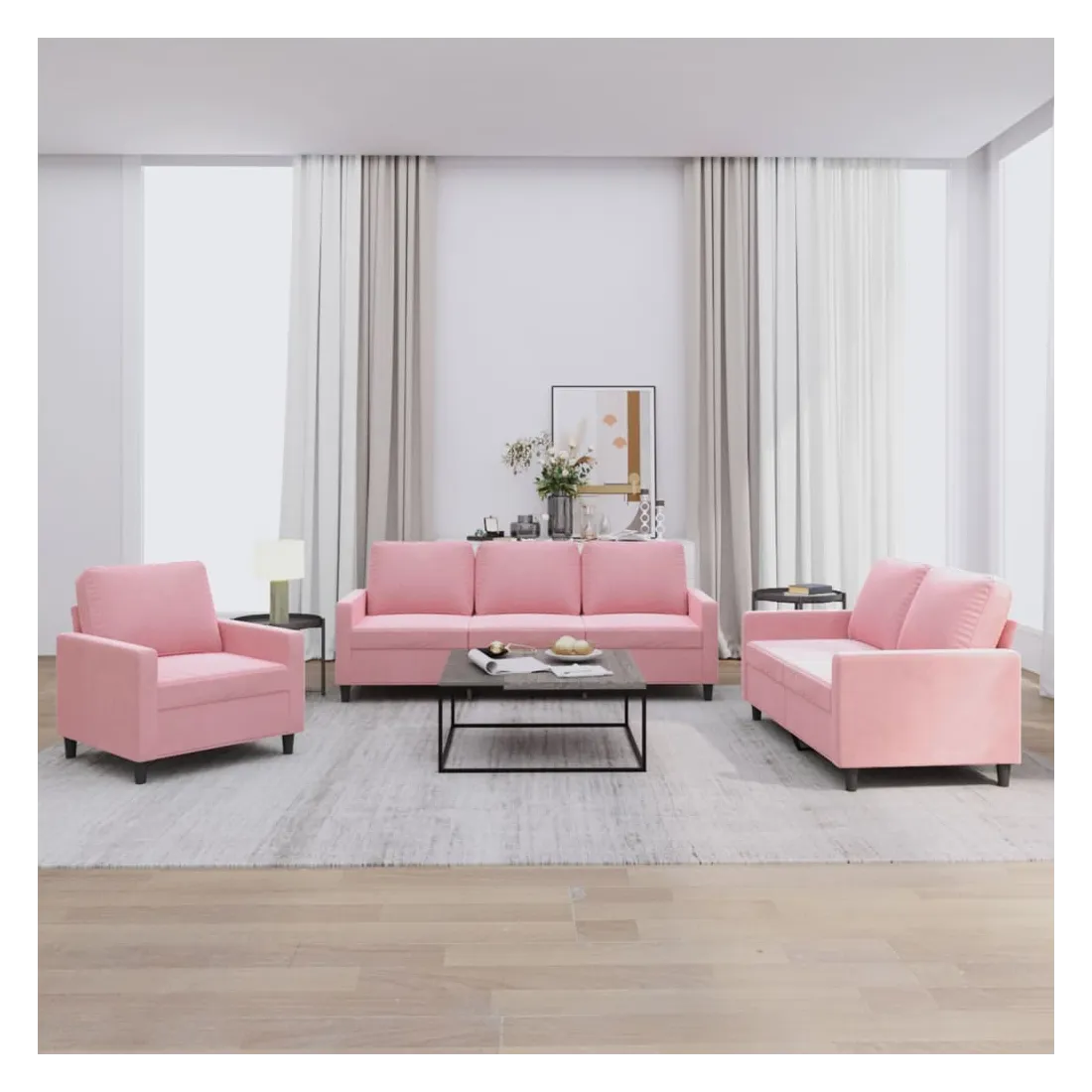 Cet ensemble de canapés est un excellent endroit pour discuter, lire, regarder la télévision ou simplement vous détendre. Il est destiné à être un point central de votre maison. Velours doux : le velours est un tissu doux et confortable, agréable au toucher.Structure robuste et stable : la structure en contreplaqué et en métal du canapé assure robustesse et stabilité.Expérience d'assise confortable : le canapé est très confortable grâce au siège et aux accoudoirs épais et rembourrés.