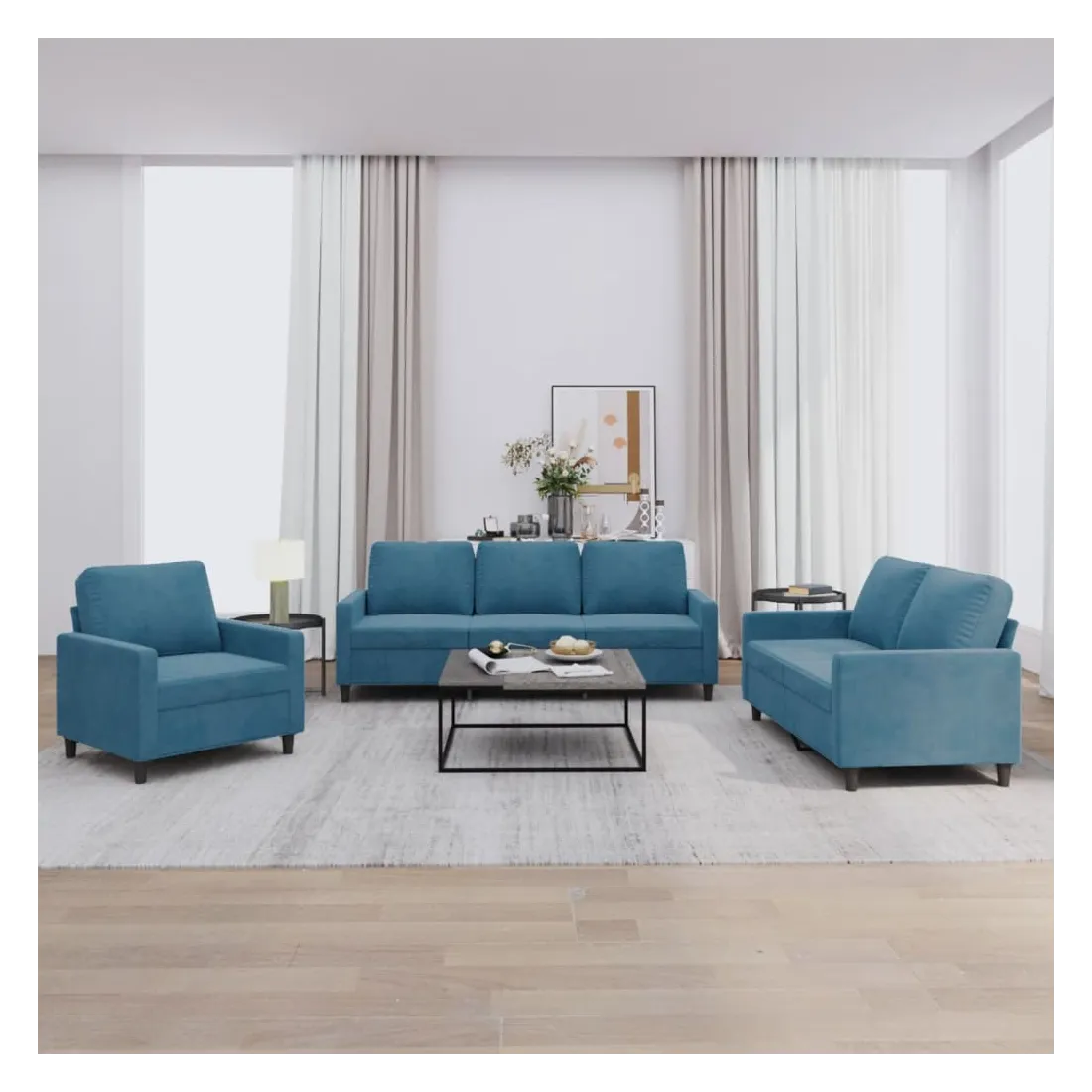 Ensemble de canapés 3 pcs avec coussins Bleu Velours