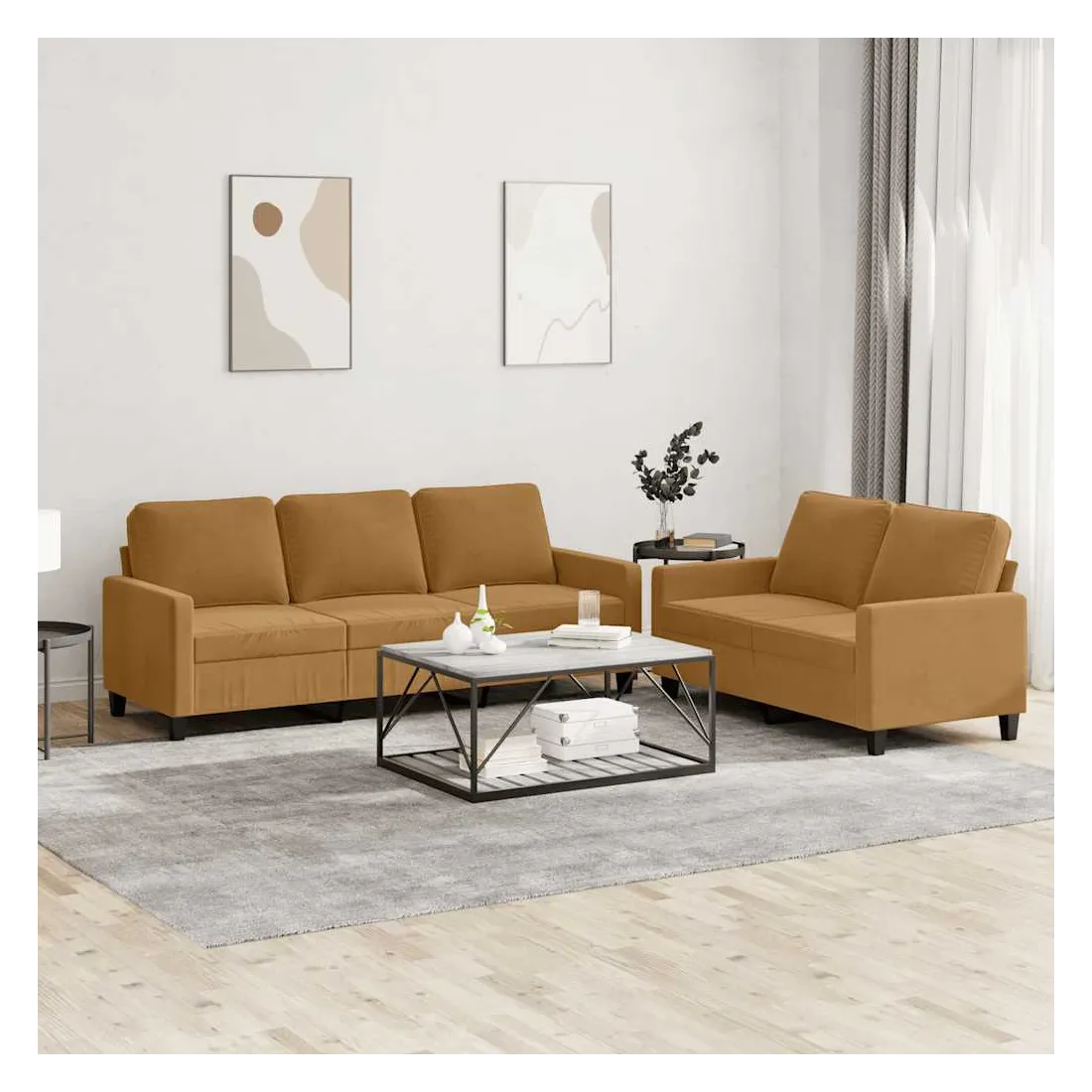 Ensemble de canapés 2 pcs avec coussins Marron Velours