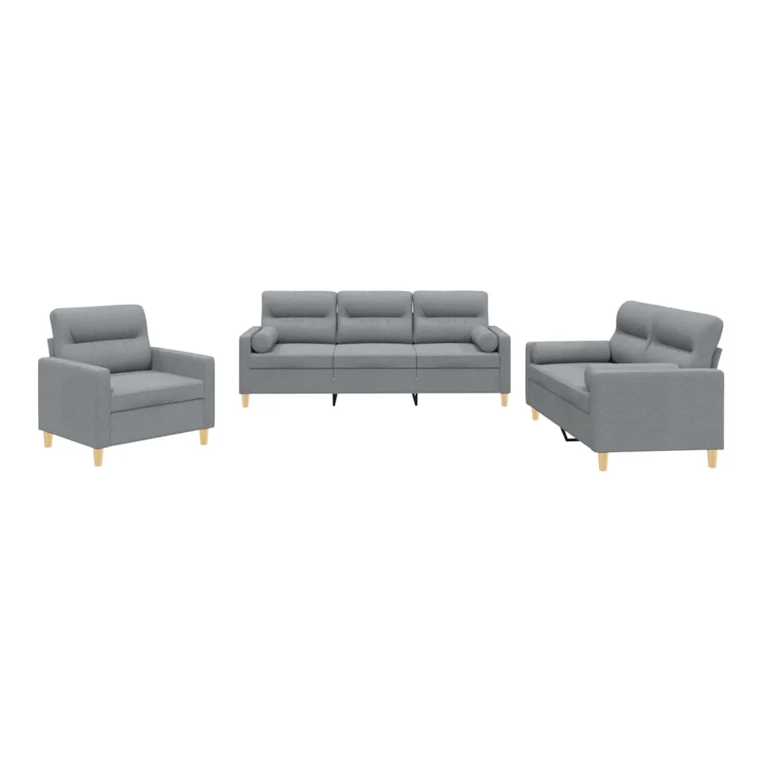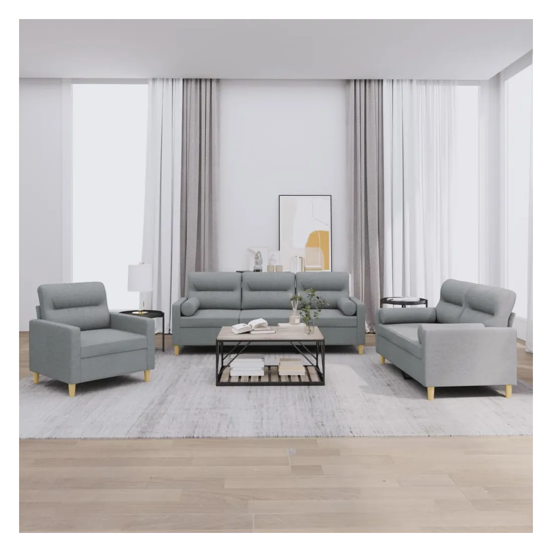 Cet ensemble de canapés est un excellent endroit pour discuter, lire, regarder la télévision ou simplement vous détendre. Il est destiné à être un point central de votre maison. Tissu durable : le tissu présente un aspect simple et épuré tout en restant respirant et durable.Structure robuste et stable : la structure en contreplaqué et en métal du canapé assure robustesse et stabilité.Expérience d'assise confortable : le canapé est très confortable avec le siège, les accoudoirs et les oreillers de dossier bien rembourrés.Oreillers cylindriques pratiques : ces oreillers cylindriques non seulement embellissent votre décor, mais ils peuvent également apporter un confort supplémentaire lorsque vous êtes assis ou allongé.
