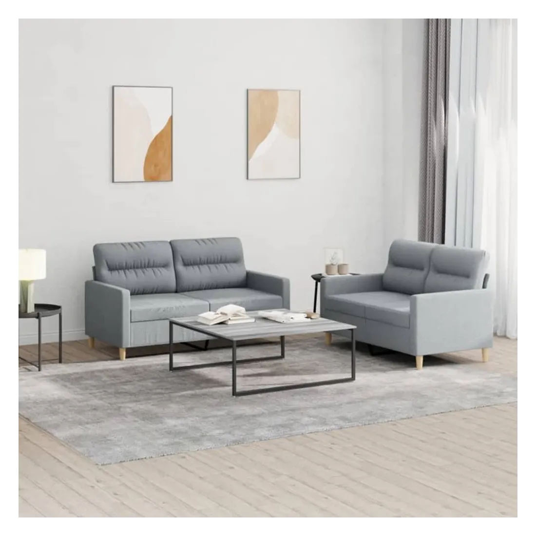 Cet ensemble de canapés est un excellent endroit pour discuter, lire, regarder la télévision ou simplement vous détendre. Il est destiné à être un point central de votre maison. Tissu durable : le tissu présente un aspect simple et épuré tout en restant respirant et durable.Structure robuste et stable : la structure en contreplaqué et en métal du canapé assure robustesse et stabilité.Expérience d'assise confortable : le canapé est très confortable grâce au siège et aux accoudoirs épais et rembourrés.