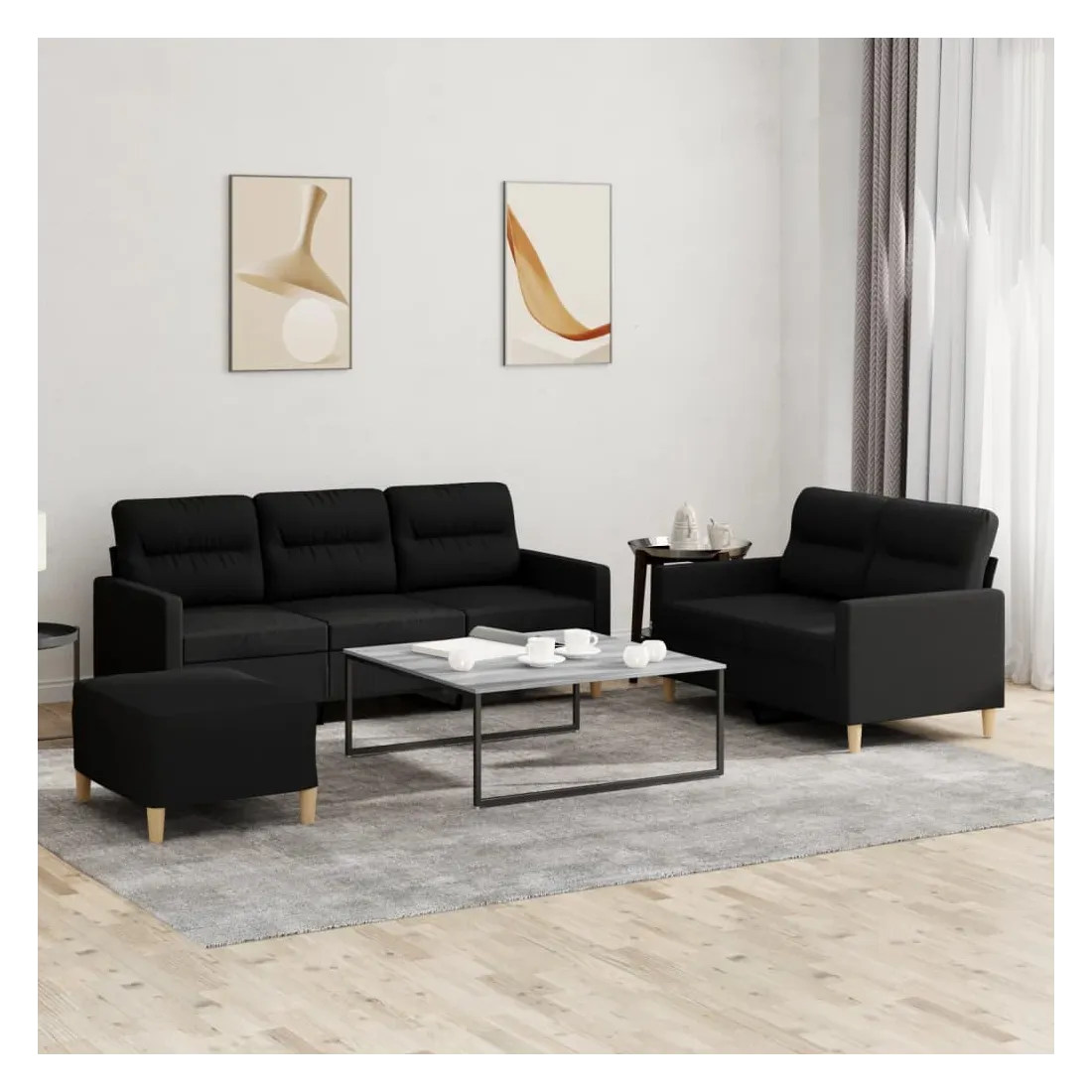 Cet ensemble de canapés est un excellent endroit pour discuter, lire, regarder la télévision ou simplement vous détendre. Il est destiné à être un point central de votre maison. Tissu durable : le tissu présente un aspect simple et épuré tout en restant respirant et durable.Structure robuste et stable : la structure en contreplaqué et en métal du canapé assure robustesse et stabilité.Expérience d'assise confortable : le canapé est très confortable grâce au siège et aux accoudoirs épais et rembourrés.Pouf polyvalent : ce repose-pied convient pour reposer vos pieds lorsque vous êtes allongé dans un canapé, ou pour vous offrir un siège supplémentaire dans votre pièce. De plus, le design simple et la taille compacte le rendent idéal pour presque tous vos espaces de vie.