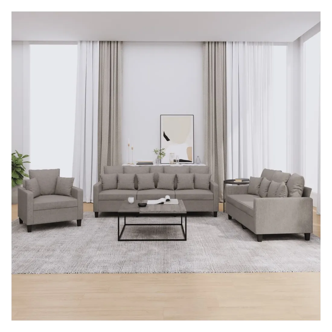 Cet ensemble de canapés est un excellent endroit pour discuter, lire, regarder la télévision ou simplement vous détendre. Il est destiné à être un point central de votre maison. Tissu durable : le tissu présente un aspect simple et épuré tout en restant respirant et durable.Structure robuste et stable : la structure en contreplaqué et en métal du canapé assure robustesse et stabilité.Expérience d'assise confortable : le canapé est très confortable avec le siège, les accoudoirs et les oreillers de dossier bien rembourrés.Oreillers de canapé pratiques : ces oreillers décoratifs carrés non seulement embellissent votre décor, mais ils peuvent également apporter un confort supplémentaire lorsque vous êtes assis ou allongé.