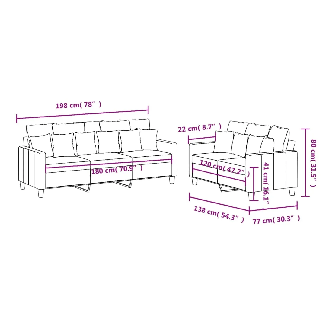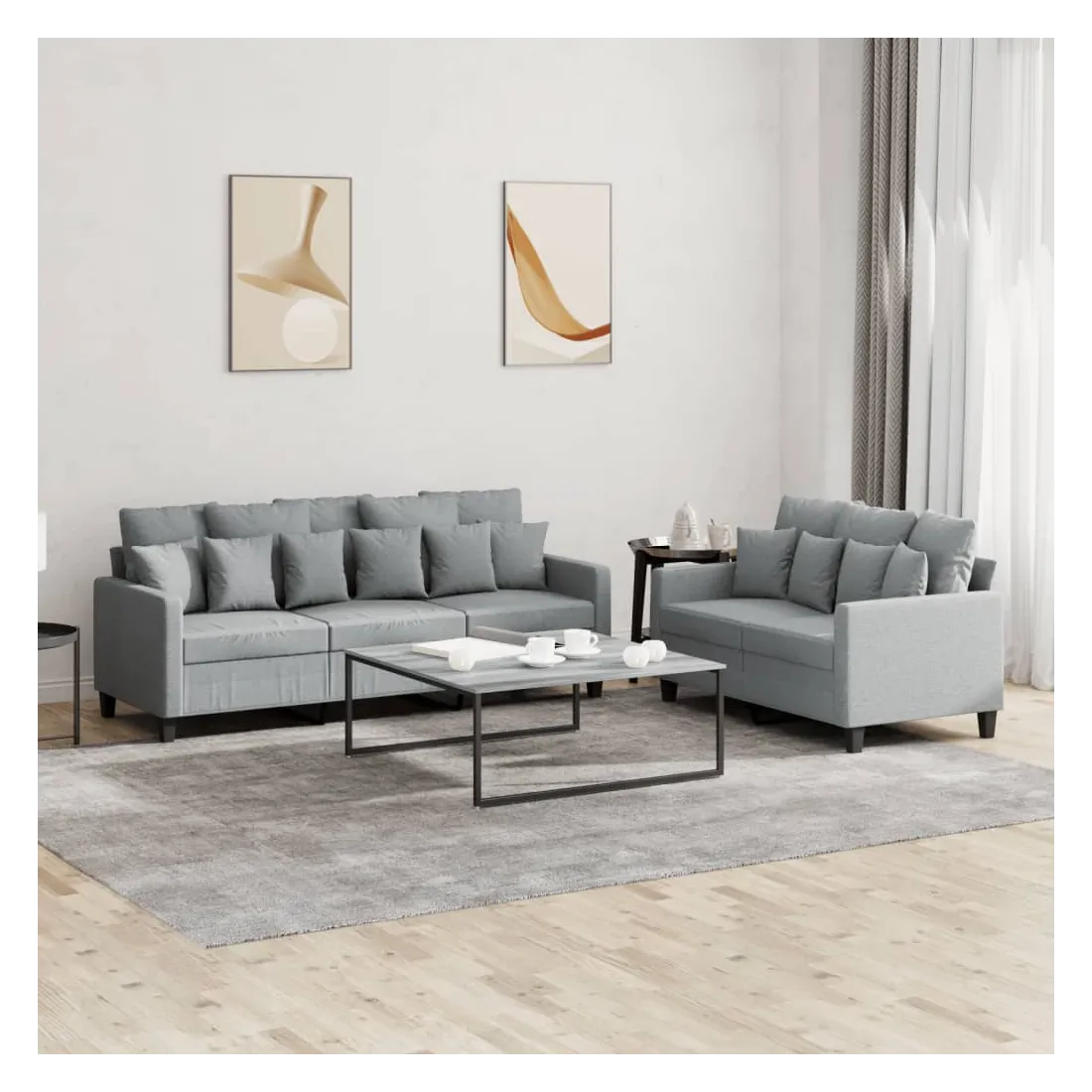 Cet ensemble de canapés est un excellent endroit pour discuter, lire, regarder la télévision ou simplement vous détendre. Il est destiné à être un point central de votre maison. Tissu durable : le tissu présente un aspect simple et épuré tout en restant respirant et durable. Structure robuste et stable : la structure en contreplaqué et en métal du canapé assure robustesse et stabilité. Expérience d'assise confortable : le canapé est très confortable avec le siège, les accoudoirs et les oreillers de dossier bien rembourrés.