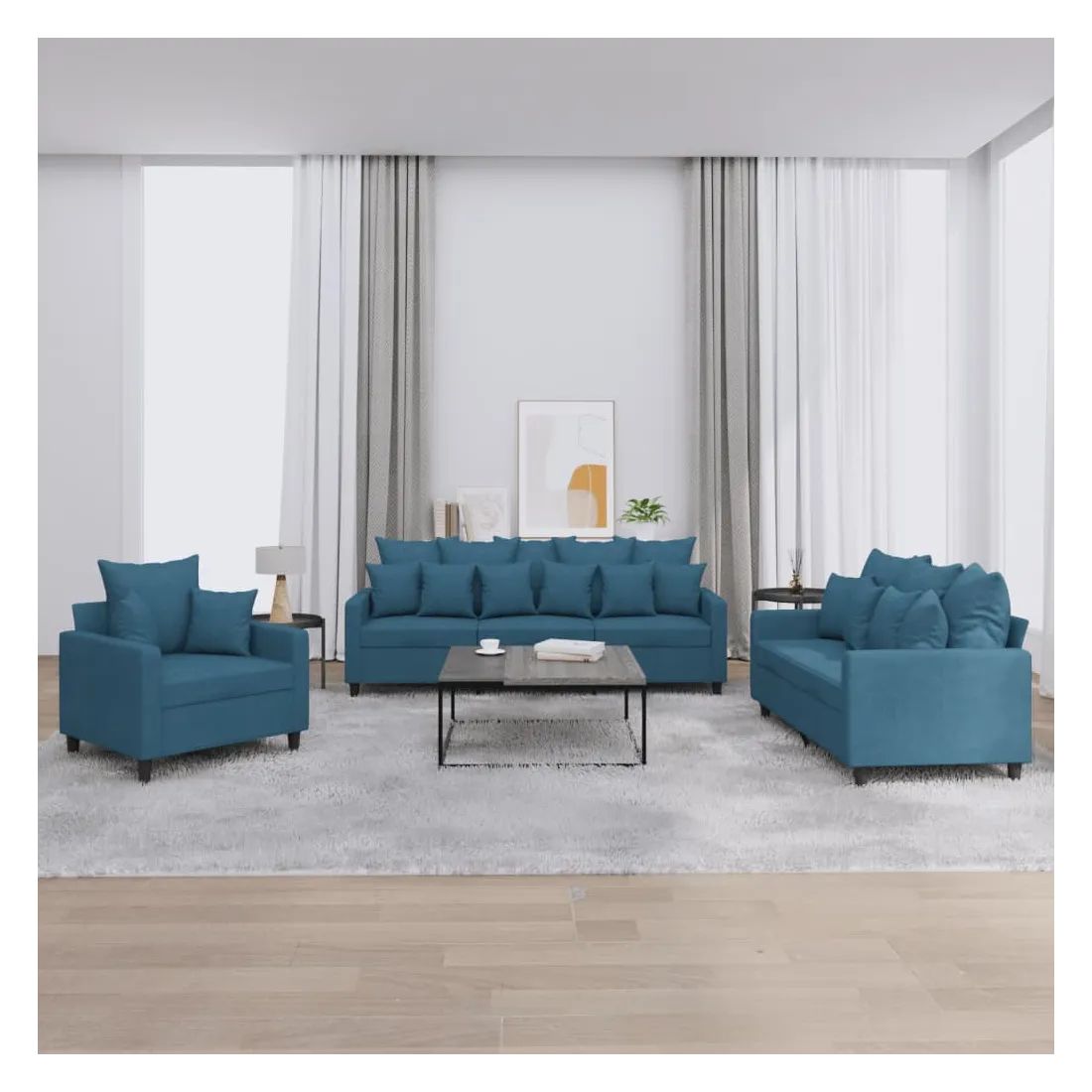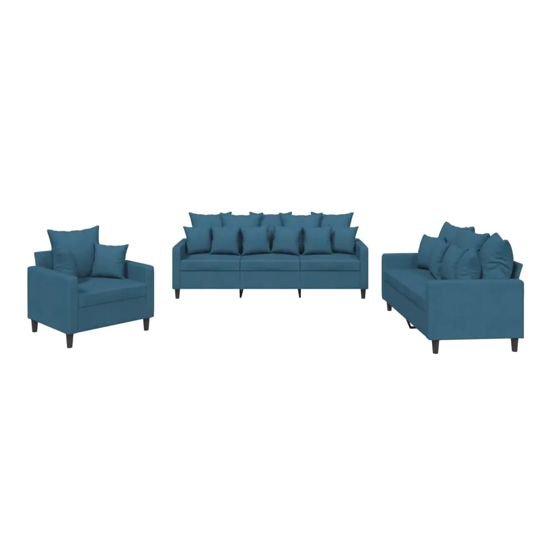 Cet ensemble de canapés est un excellent endroit pour discuter, lire, regarder la télévision ou simplement vous détendre. Il est destiné à être un point central de votre maison. Velours doux : le velours est un tissu doux et confortable, agréable au toucher.Structure robuste et stable : la structure en contreplaqué et en métal du canapé assure robustesse et stabilité. Expérience d'assise confortable : le canapé est très confortable avec le siège, les accoudoirs et les oreillers de dossier bien rembourrés.