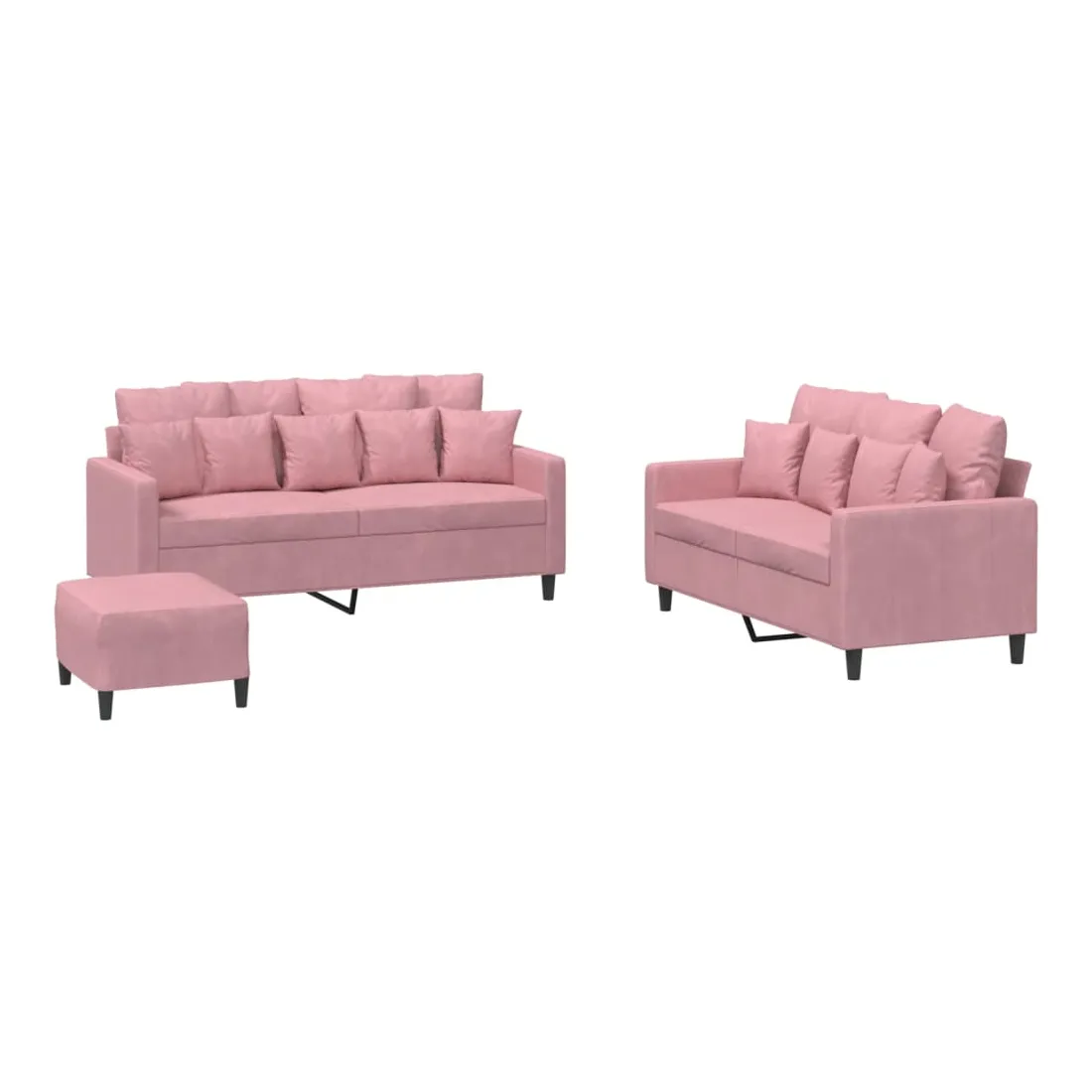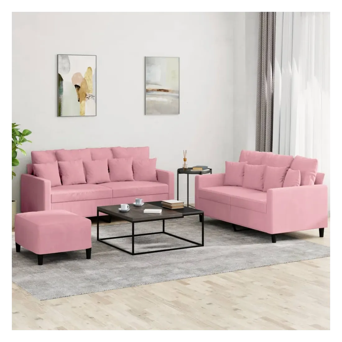 Cet ensemble de canapés est un excellent endroit pour discuter, lire, regarder la télévision ou simplement vous détendre. Il est destiné à être un point central de votre maison. Velours doux : le velours est un tissu doux et confortable, agréable au toucher.Structure robuste et stable : la structure en contreplaqué et en métal du canapé assure robustesse et stabilité. Expérience d'assise confortable : le canapé est très confortable avec le siège, les accoudoirs et les oreillers de dossier bien rembourrés.Pouf polyvalent : ce repose-pied convient pour reposer vos pieds lorsque vous êtes allongé dans un canapé ou pour vous offrir un siège supplémentaire dans votre pièce. De plus, le design simple et la taille compacte le rendent idéal pour presque tous vos espaces de vie.