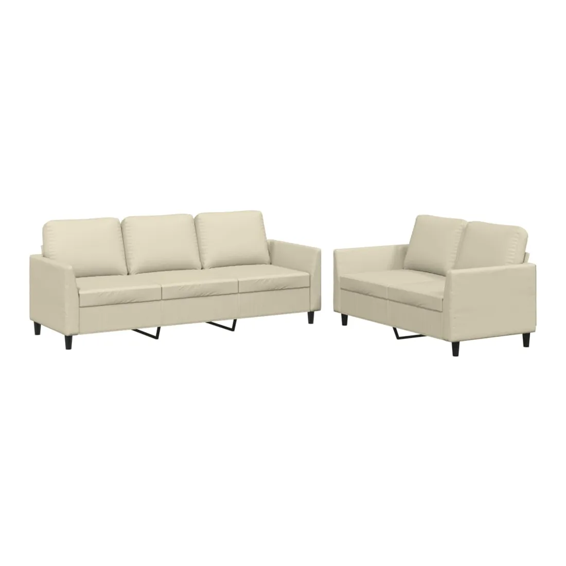 Cet ensemble de canapés est un excellent endroit pour discuter, lire, regarder la télévision ou simplement vous détendre. Il est destiné à être un point central de votre maison. Similicuir durable : le similicuir de qualité supérieure est un matériau très durable. Il est résistant aux taches, ce qui le rend facile à nettoyer avec un chiffon humide. La surface lisse donne également un aspect luxueux et la beauté du cuir véritable.Structure robuste et stable : la structure en contreplaqué et en métal du canapé assure robustesse et stabilité. Expérience d'assise confortable : le canapé est très confortable avec le siège, les accoudoirs et les oreillers de dossier bien rembourrés.