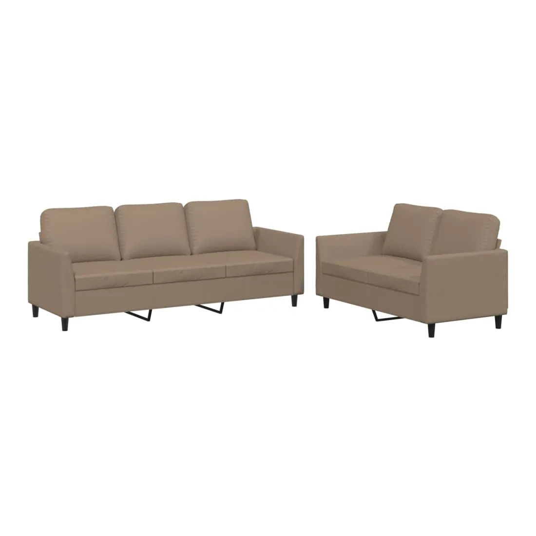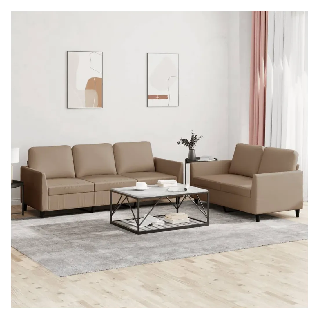 Cet ensemble de canapés est un excellent endroit pour discuter, lire, regarder la télévision ou simplement vous détendre. Il est destiné à être un point central de votre maison. Similicuir durable : le similicuir de qualité supérieure est un matériau très durable. Il est résistant aux taches, ce qui le rend facile à nettoyer avec un chiffon humide. La surface lisse donne également un aspect luxueux et la beauté du cuir véritable.Structure robuste et stable : la structure en contreplaqué et en métal du canapé assure robustesse et stabilité. Expérience d'assise confortable : le canapé est très confortable avec le siège, les accoudoirs et les oreillers de dossier bien rembourrés.