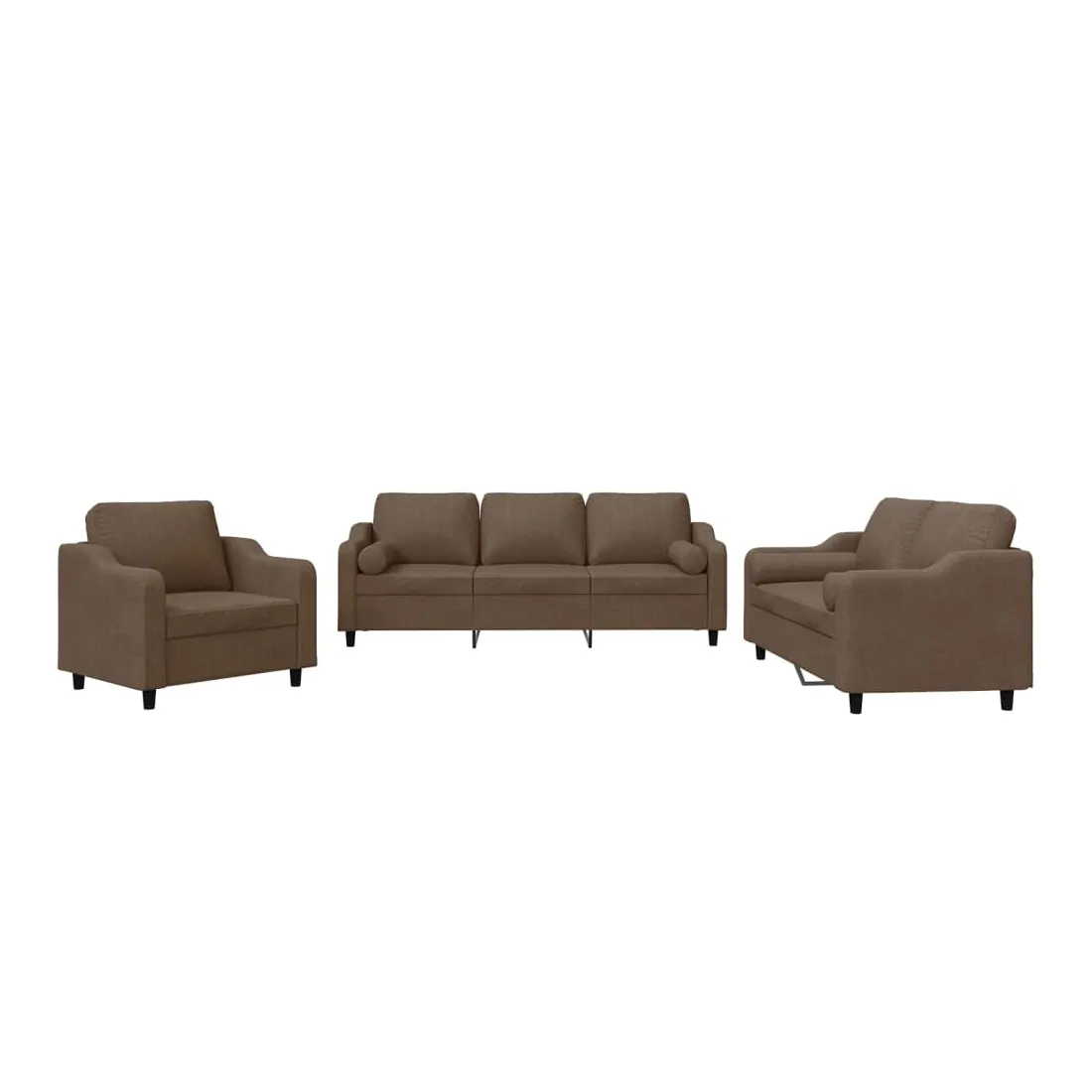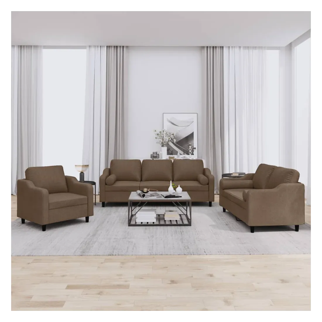 Ensemble de canapés 3 pcs avec coussins marron tissu