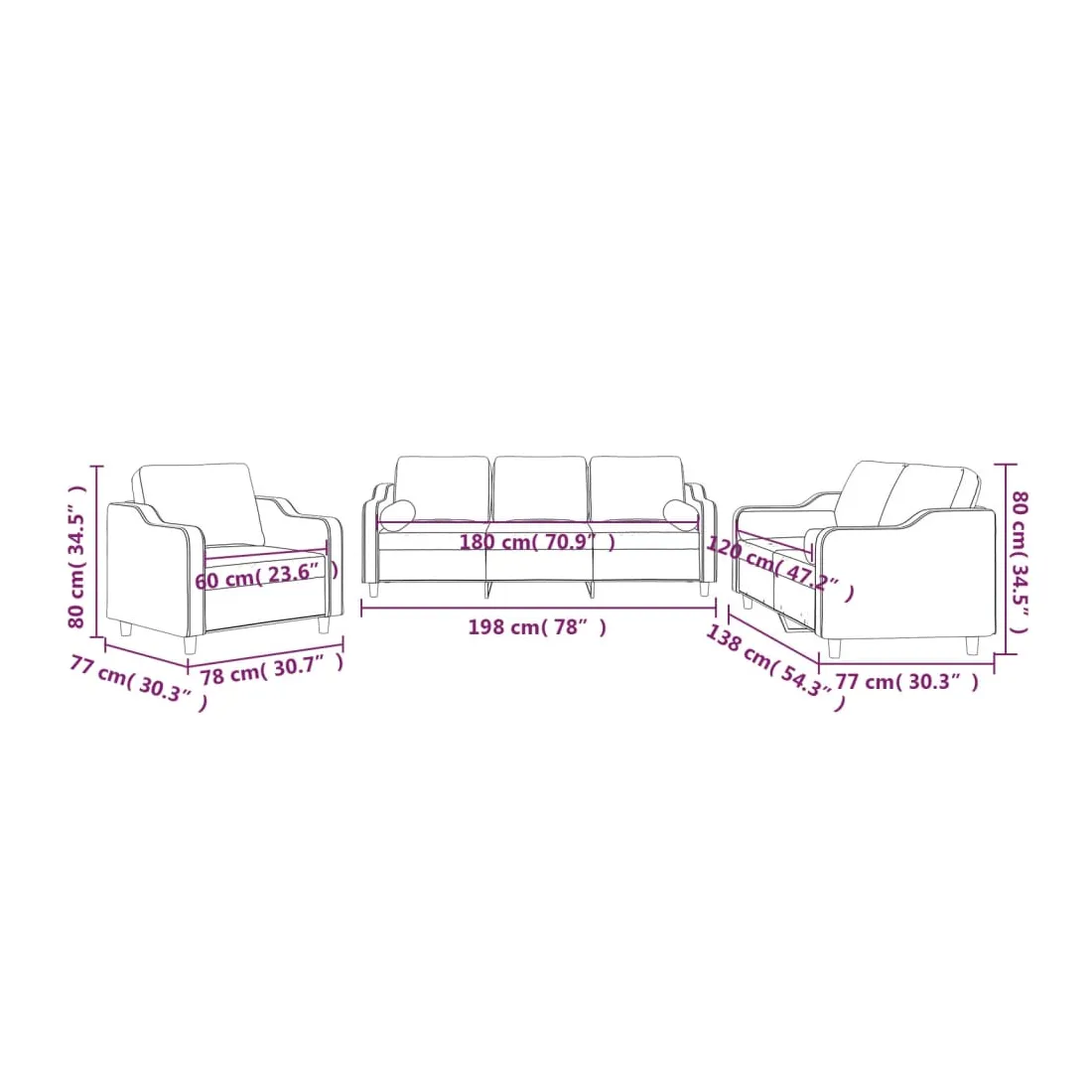 vidaXLCet ensemble de canapés est un excellent endroit pour discuter, lire, regarder la télévision ou simplement vous détendre. Il est destiné à être un point central de votre maison. Tissu durable : le tissu présente un aspect simple et épuré tout en restant respirant et durable.Structure robuste et stable : la structure en contreplaqué et en métal du canapé assure robustesse et stabilité. Expérience d'assise confortable : le canapé est très confortable avec le siège, les accoudoirs et les oreillers de dossier bien rembourrés. Oreillers cylindriques pratiques : ces oreillers cylindriques non seulement embellissent votre décor mais ils peuvent également apporter un confort supplémentaire lorsque vous êtes assis ou allongé.