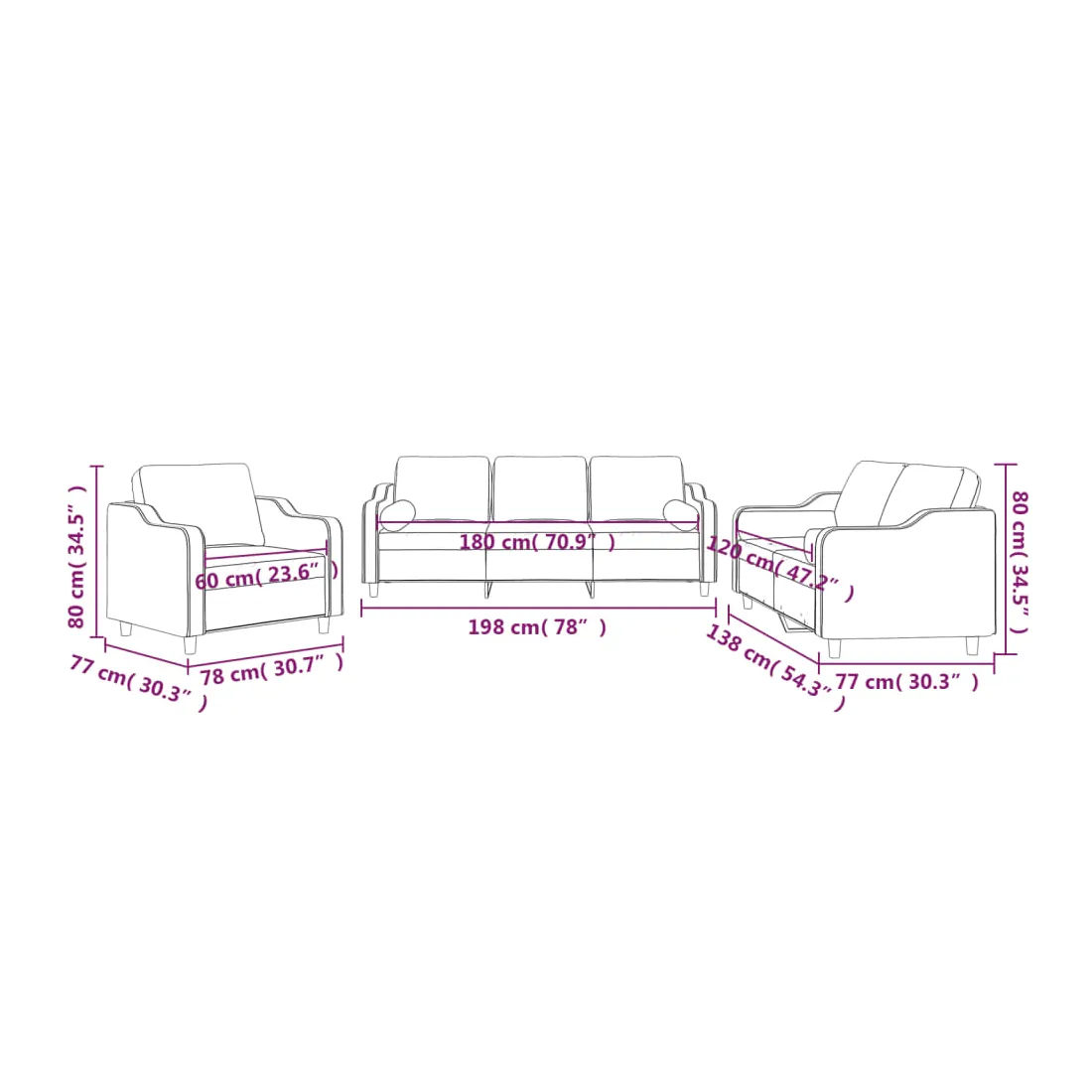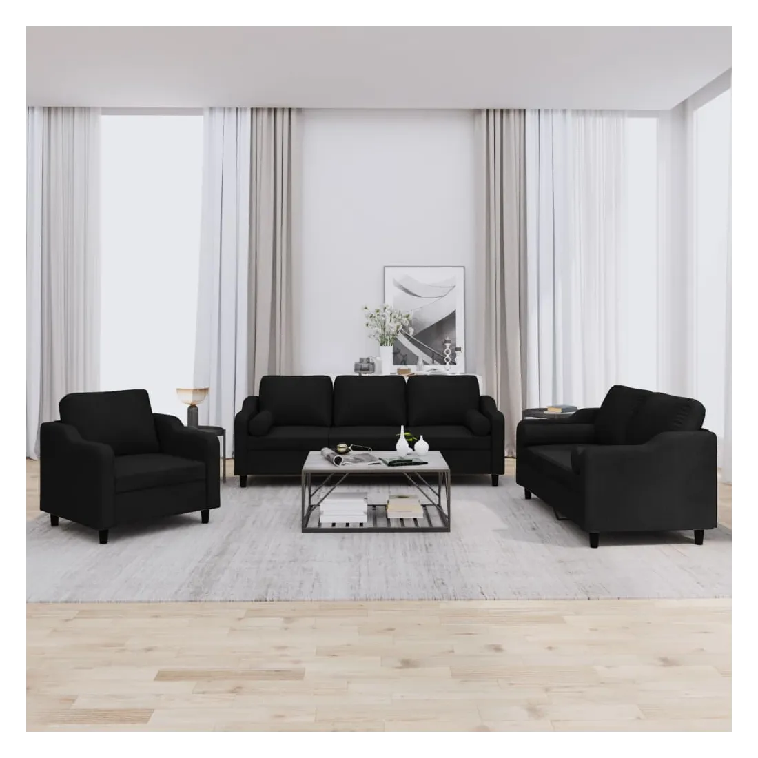 Cet ensemble de canapés est un excellent endroit pour discuter, lire, regarder la télévision ou simplement vous détendre. Il est destiné à être un point central de votre maison. Tissu durable : le tissu présente un aspect simple et épuré tout en restant respirant et durable.Structure robuste et stable : la structure en contreplaqué et en métal du canapé assure robustesse et stabilité. Expérience d'assise confortable : le canapé est très confortable avec le siège, les accoudoirs et les oreillers de dossier bien rembourrés. Oreillers cylindriques pratiques : ces oreillers cylindriques non seulement embellissent votre décor mais ils peuvent également apporter un confort supplémentaire lorsque vous êtes assis ou allongé.