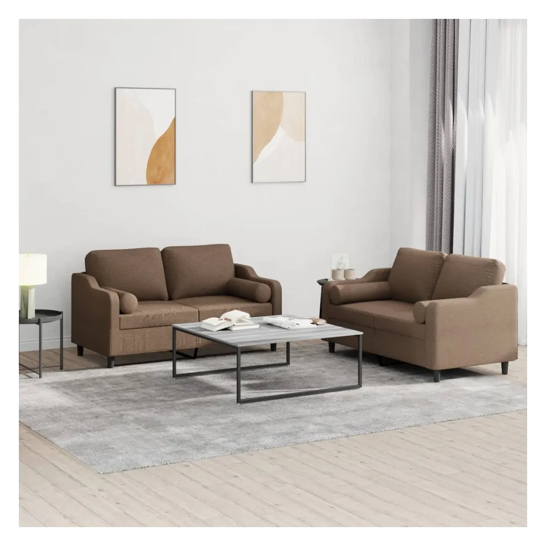 Ensemble de canapés 2 pcs avec coussins marron tissu