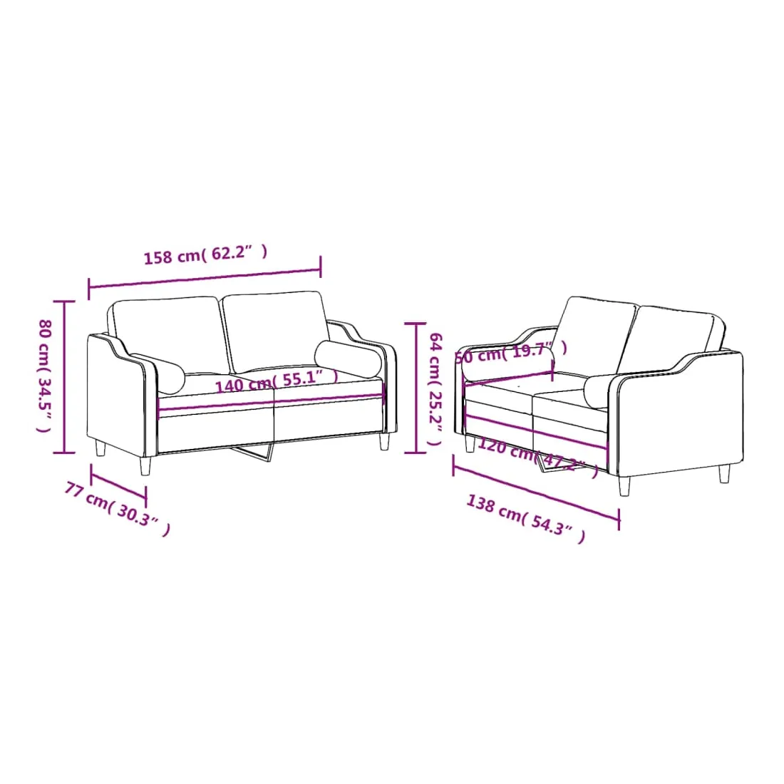 vidaXLCet ensemble de canapés est un excellent endroit pour discuter, lire, regarder la télévision ou simplement vous détendre. Il est destiné à être un point central de votre maison. Tissu durable : le tissu présente un aspect simple et épuré tout en restant respirant et durable.Structure robuste et stable : la structure en contreplaqué et en métal du canapé assure robustesse et stabilité. Expérience d'assise confortable : le canapé est très confortable avec le siège, les accoudoirs et les oreillers de dossier bien rembourrés. Oreillers cylindriques pratiques : ces oreillers cylindriques non seulement embellissent votre décor mais ils peuvent également apporter un confort supplémentaire lorsque vous êtes assis ou allongé.