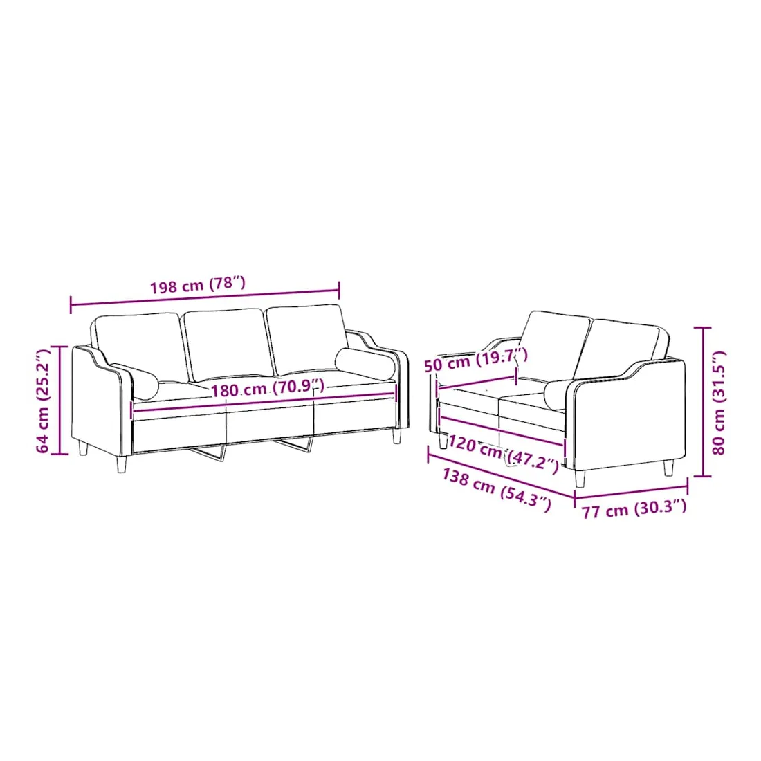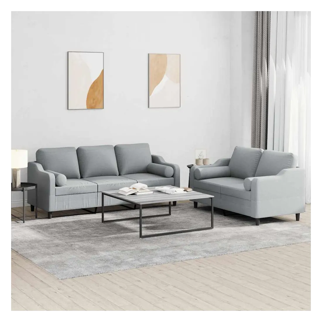 Cet ensemble de canapés est un excellent endroit pour discuter, lire, regarder la télévision ou simplement vous détendre. Il est destiné à être un point central de votre maison. Tissu durable : le tissu présente un aspect simple et épuré tout en restant respirant et durable.Structure robuste et stable : la structure en contreplaqué et en métal du canapé assure robustesse et stabilité. Expérience d'assise confortable : le canapé est très confortable avec le siège, les accoudoirs et les oreillers de dossier bien rembourrés. Oreillers cylindriques pratiques : ces oreillers cylindriques non seulement embellissent votre décor mais ils peuvent également apporter un confort supplémentaire lorsque vous êtes assis ou allongé.
