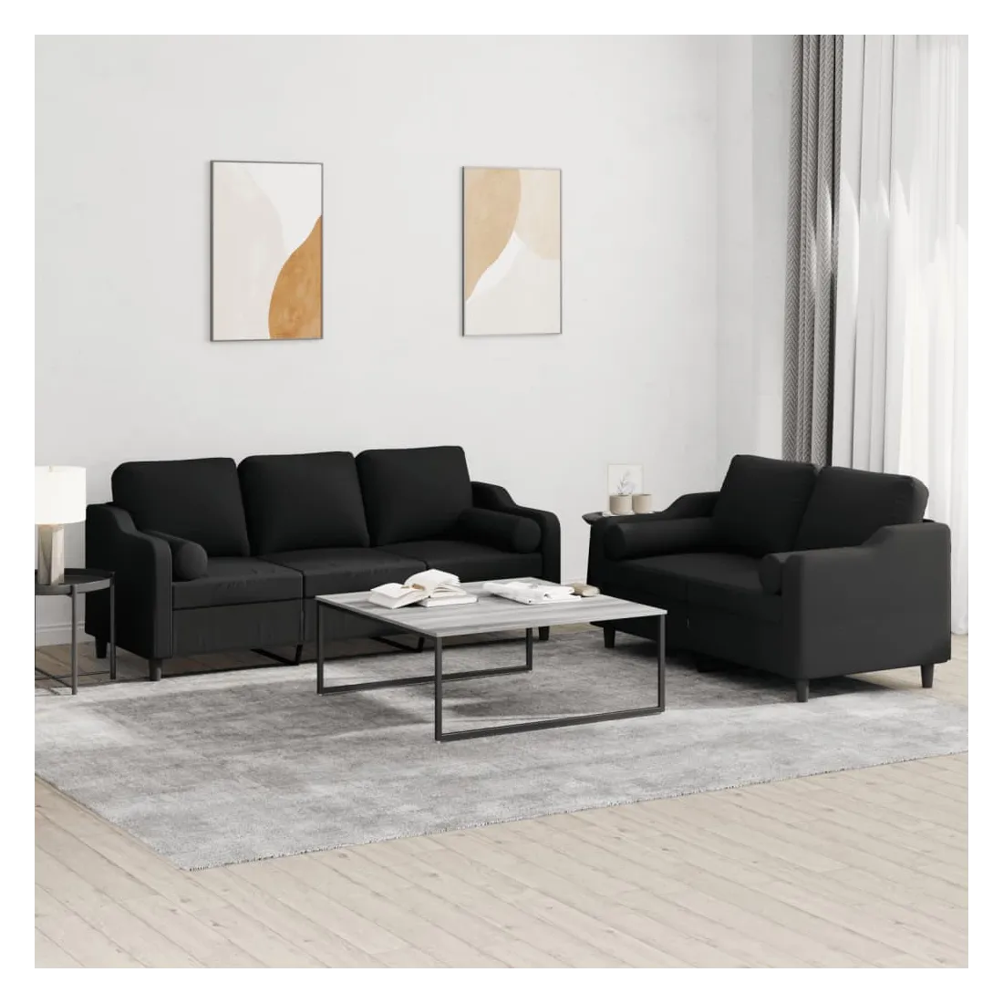 Cet ensemble de canapés est un excellent endroit pour discuter, lire, regarder la télévision ou simplement vous détendre. Il est destiné à être un point central de votre maison. Tissu durable : le tissu présente un aspect simple et épuré tout en restant respirant et durable.Structure robuste et stable : la structure en contreplaqué et en métal du canapé assure robustesse et stabilité. Expérience d'assise confortable : le canapé est très confortable avec le siège, les accoudoirs et les oreillers de dossier bien rembourrés. Oreillers cylindriques pratiques : ces oreillers cylindriques non seulement embellissent votre décor mais ils peuvent également apporter un confort supplémentaire lorsque vous êtes assis ou allongé.