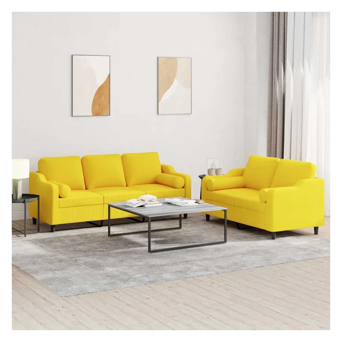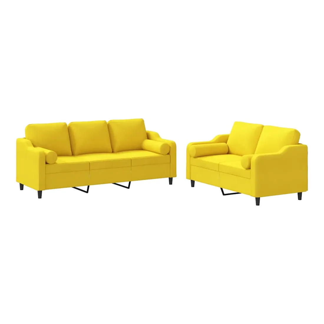Ensemble de canapés 2 pcs avec coussins jaune clair tissu