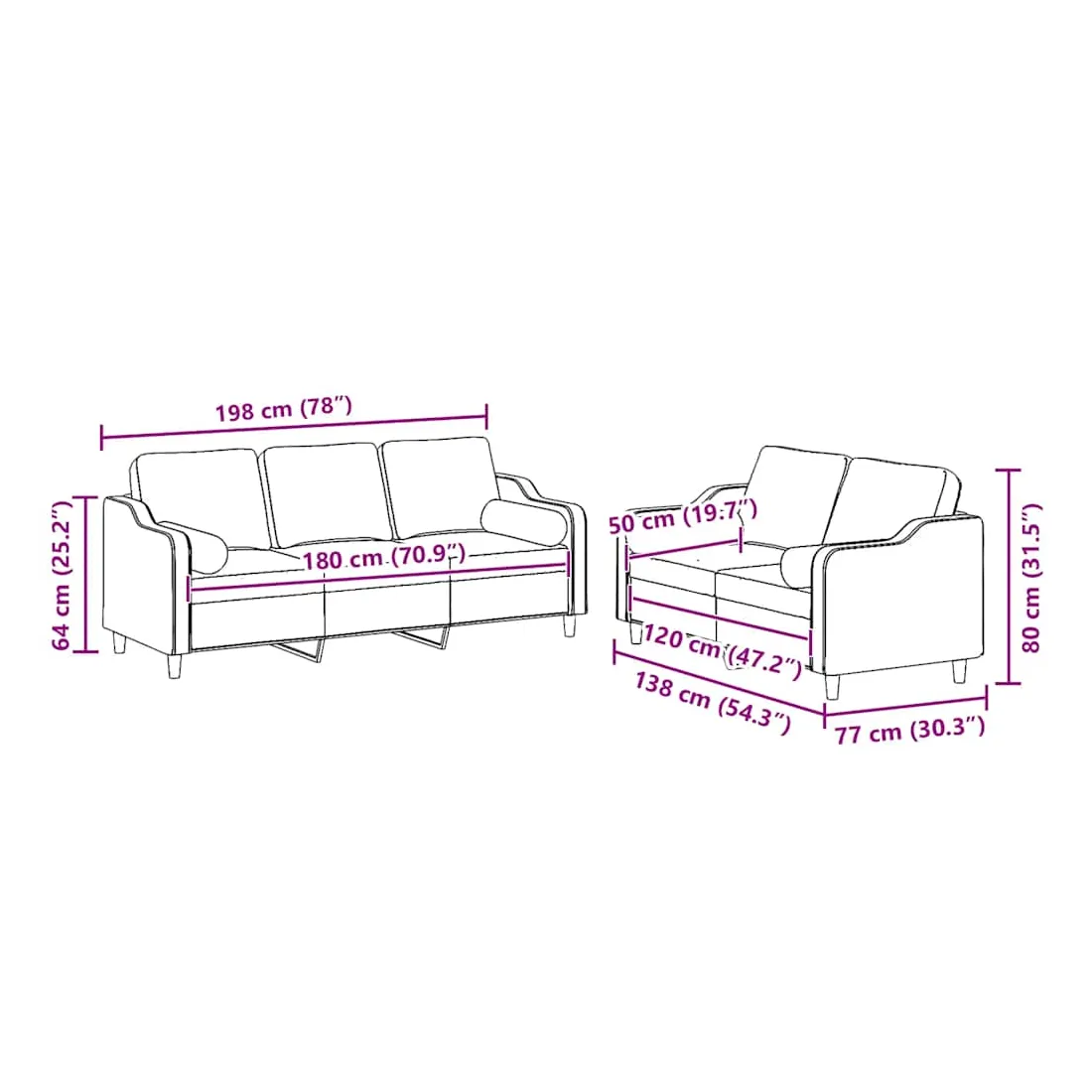 vidaXLCet ensemble de canapés est un excellent endroit pour discuter, lire, regarder la télévision ou simplement vous détendre. Il est destiné à être un point central de votre maison. Tissu durable : le tissu présente un aspect simple et épuré tout en restant respirant et durable.Structure robuste et stable : la structure en contreplaqué et en métal du canapé assure robustesse et stabilité. Expérience d'assise confortable : le canapé est très confortable avec le siège, les accoudoirs et les oreillers de dossier bien rembourrés. Oreillers cylindriques pratiques : ces oreillers cylindriques non seulement embellissent votre décor mais ils peuvent également apporter un confort supplémentaire lorsque vous êtes assis ou allongé.