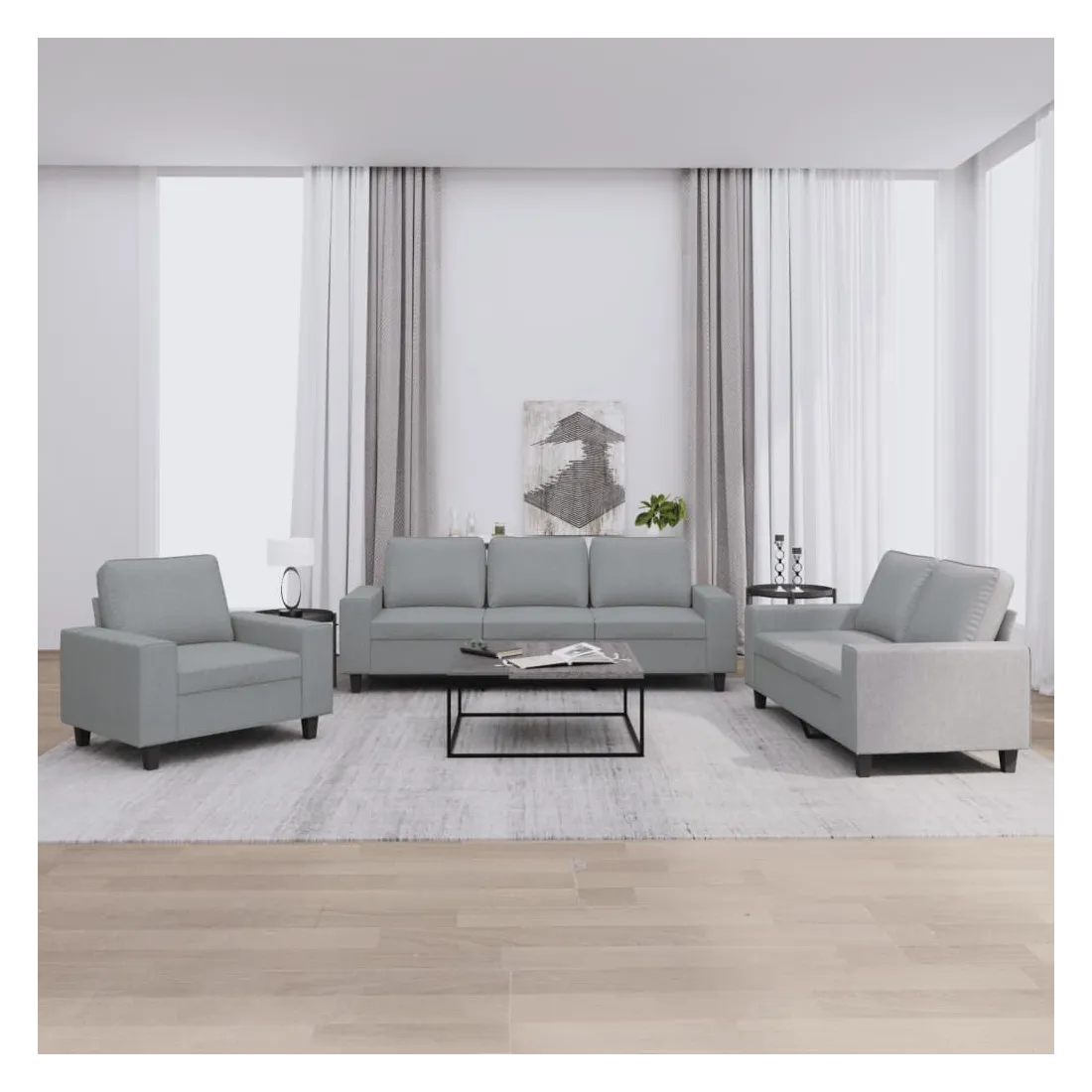 Cet ensemble de canapés est un excellent endroit pour discuter, lire, regarder la télévision ou simplement vous détendre. Il est destiné à être un point central de votre maison. Tissu durable : le tissu présente un aspect simple et épuré tout en restant respirant et durable.Structure robuste et stable : la structure en contreplaqué et en métal du canapé assure robustesse et stabilité.Expérience d'assise confortable : le canapé est très confortable avec le siège, les accoudoirs et les oreillers de dossier bien rembourrés.