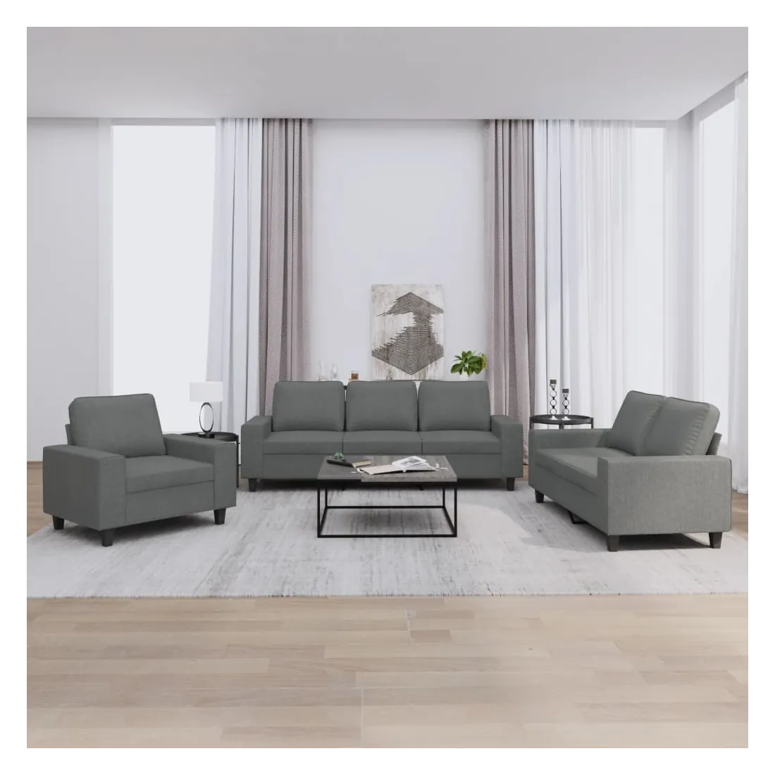 Cet ensemble de canapés est un excellent endroit pour discuter, lire, regarder la télévision ou simplement vous détendre. Il est destiné à être un point central de votre maison. Tissu durable : le tissu présente un aspect simple et épuré tout en restant respirant et durable.Structure robuste et stable : la structure en contreplaqué et en métal du canapé assure robustesse et stabilité.Expérience d'assise confortable : le canapé est très confortable avec le siège, les accoudoirs et les oreillers de dossier bien rembourrés.