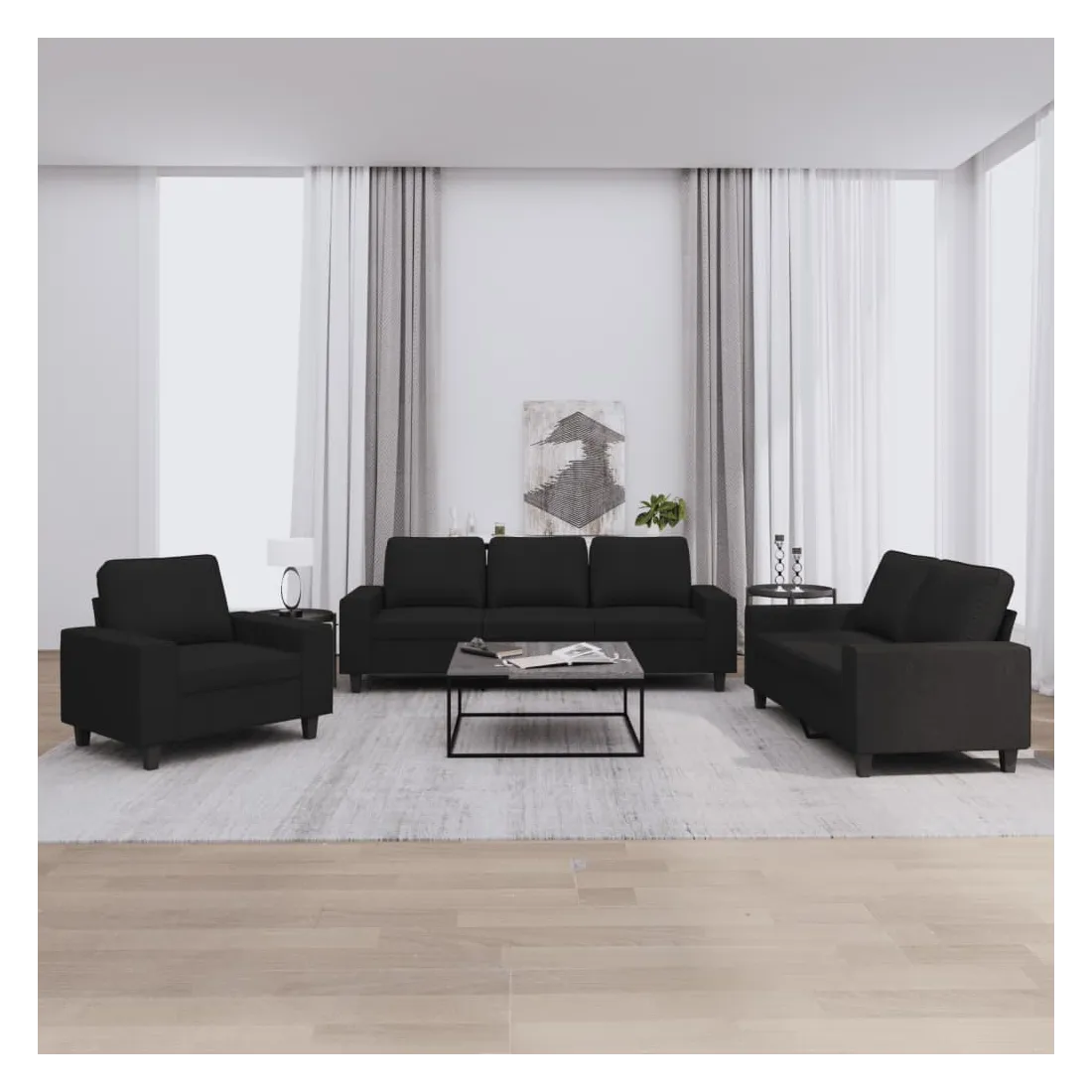 Cet ensemble de canapés est un excellent endroit pour discuter, lire, regarder la télévision ou simplement vous détendre. Il est destiné à être un point central de votre maison. Tissu durable : le tissu présente un aspect simple et épuré tout en restant respirant et durable.Structure robuste et stable : la structure en contreplaqué et en métal du canapé assure robustesse et stabilité.Expérience d'assise confortable : le canapé est très confortable avec le siège, les accoudoirs et les oreillers de dossier bien rembourrés.