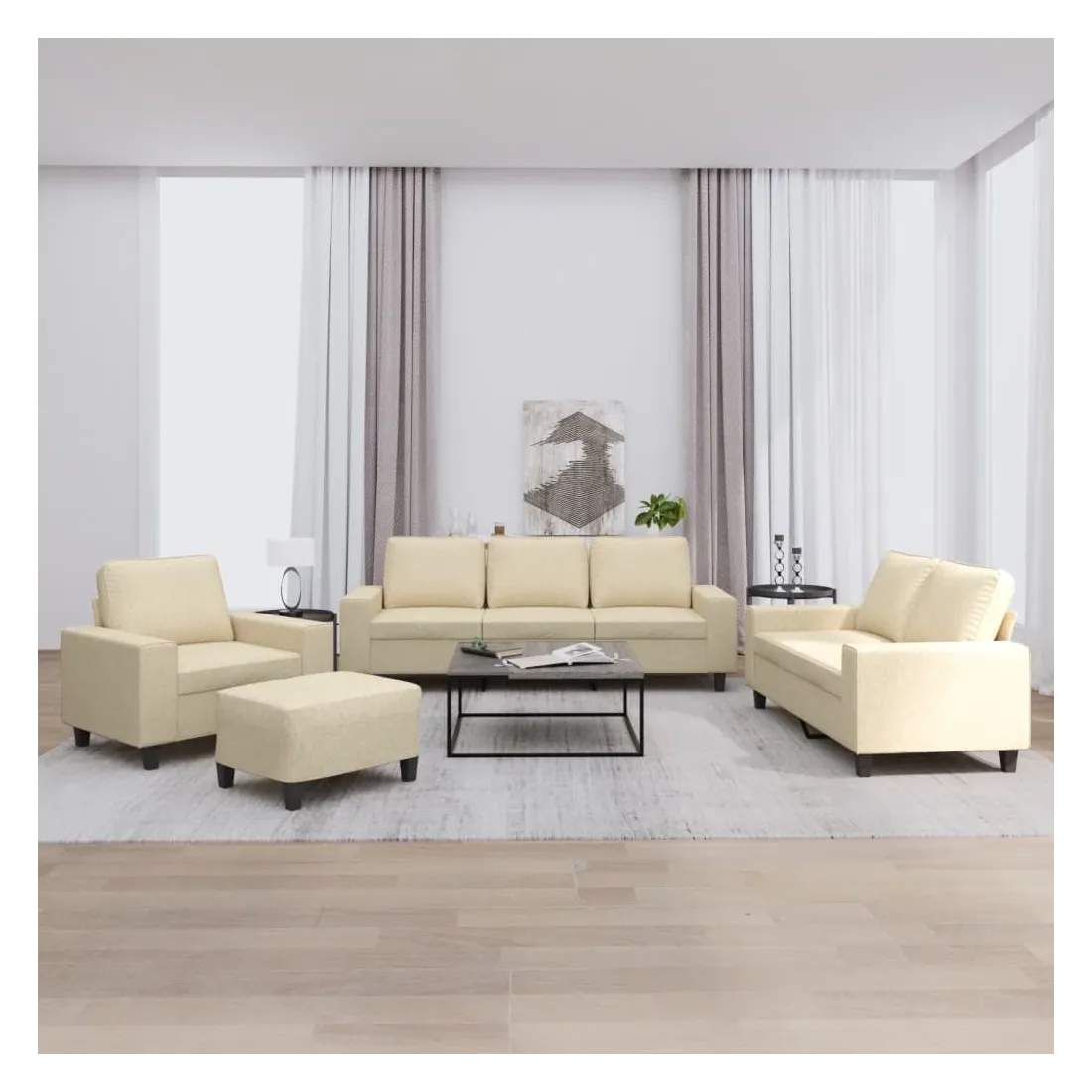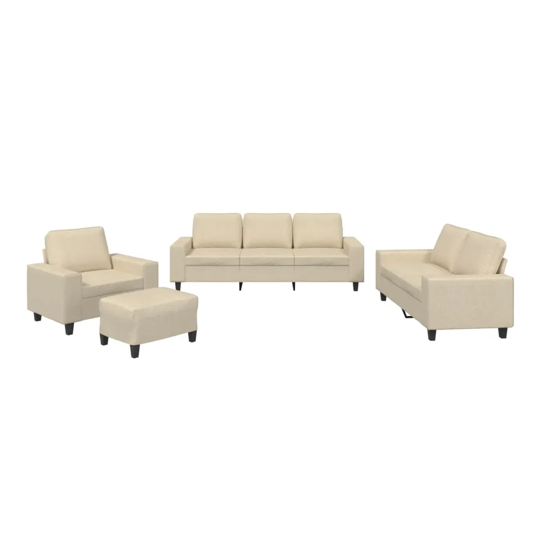 Cet ensemble de canapés est un excellent endroit pour discuter, lire, regarder la télévision ou simplement vous détendre. Il est destiné à être un point central de votre maison. Tissu durable : le tissu présente un aspect simple et épuré tout en restant respirant et durable.Structure robuste et stable : la structure en contreplaqué et en métal du canapé assure robustesse et stabilité.Expérience d'assise confortable : le canapé est très confortable avec le siège, les accoudoirs et les oreillers de dossier bien rembourrés.Pouf polyvalent : ce repose-pied convient pour reposer vos pieds lorsque vous êtes allongé dans un canapé ou pour vous offrir un siège supplémentaire dans votre pièce. De plus, le design simple et la taille compacte le rendent idéal pour presque tous vos espaces de vie.