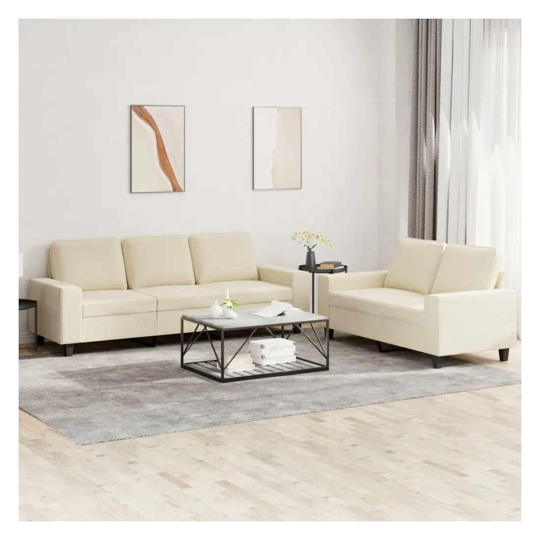 Cet ensemble de canapés est un excellent endroit pour discuter, lire, regarder la télévision ou simplement vous détendre. Il est destiné à être un point central de votre maison. Tissu durable : le tissu présente un aspect simple et épuré tout en restant respirant et durable.Structure robuste et stable : la structure en contreplaqué et en métal du canapé assure robustesse et stabilité.Expérience d'assise confortable : le canapé est très confortable avec le siège, les accoudoirs et les oreillers de dossier bien rembourrés.