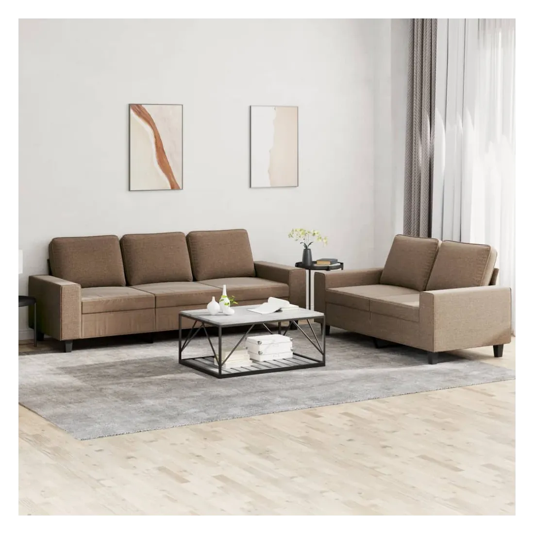 Cet ensemble de canapés est un excellent endroit pour discuter, lire, regarder la télévision ou simplement vous détendre. Il est destiné à être un point central de votre maison. Tissu durable : le tissu présente un aspect simple et épuré tout en restant respirant et durable.Structure robuste et stable : la structure en contreplaqué et en métal du canapé assure robustesse et stabilité.Expérience d'assise confortable : le canapé est très confortable avec le siège, les accoudoirs et les oreillers de dossier bien rembourrés.