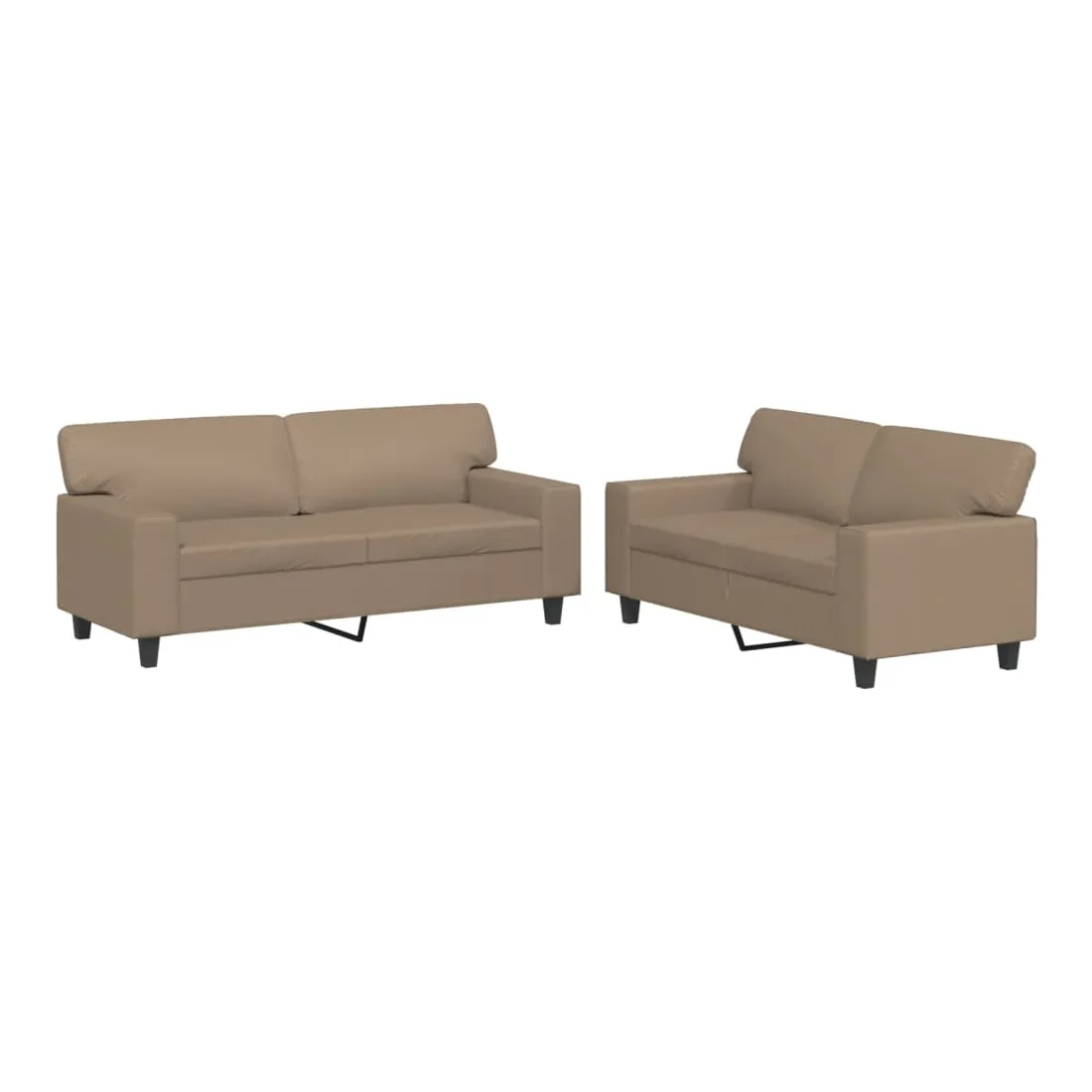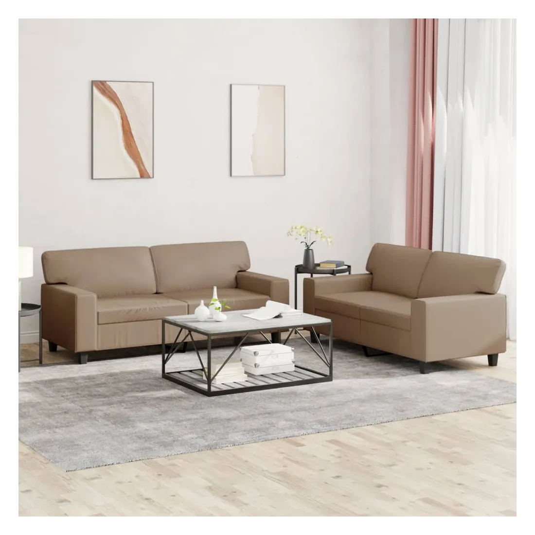 Cet ensemble de canapés est un excellent endroit pour discuter, lire, regarder la télévision ou simplement vous détendre. Il est destiné à être un point central de votre maison. Similicuir durable : le similicuir est un matériau très durable. Il est résistant aux taches, ce qui le rend facile à nettoyer avec un chiffon humide. La surface lisse donne également un aspect luxueux et la beauté du cuir véritable.Structure robuste et stable : la structure en contreplaqué et en métal du canapé assure robustesse et stabilité.Expérience d'assise confortable : le canapé est très confortable avec le siège, les accoudoirs et les oreillers de dossier bien rembourrés.