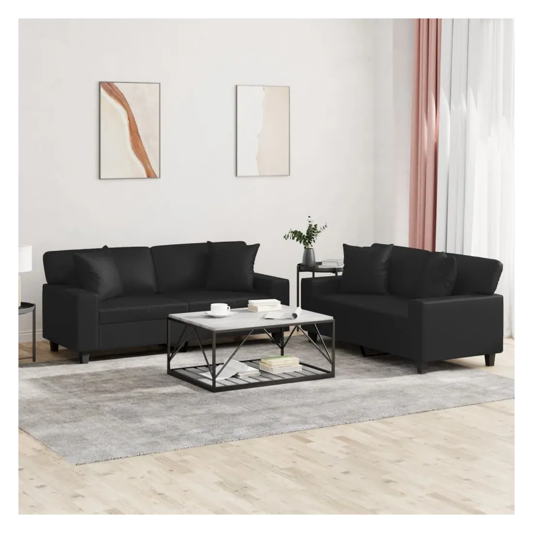 Cet ensemble de canapés est un excellent endroit pour discuter, lire, regarder la télévision ou simplement vous détendre. Il est destiné à être un point central de votre maison. Similicuir durable : le similicuir est un matériau très durable. Il est résistant aux taches, ce qui le rend facile à nettoyer avec un chiffon humide. La surface lisse donne également un aspect luxueux et la beauté du cuir véritable.Structure robuste et stable : la structure en contreplaqué et en métal du canapé assure robustesse et stabilité.Expérience d'assise confortable : le canapé est très confortable avec le siège, les accoudoirs et les oreillers de dossier bien rembourrés.Oreillers de canapé pratiques : ces oreillers décoratifs carrés non seulement embellissent votre décor mais ils peuvent également apporter un confort supplémentaire lorsque vous êtes assis ou allongé.