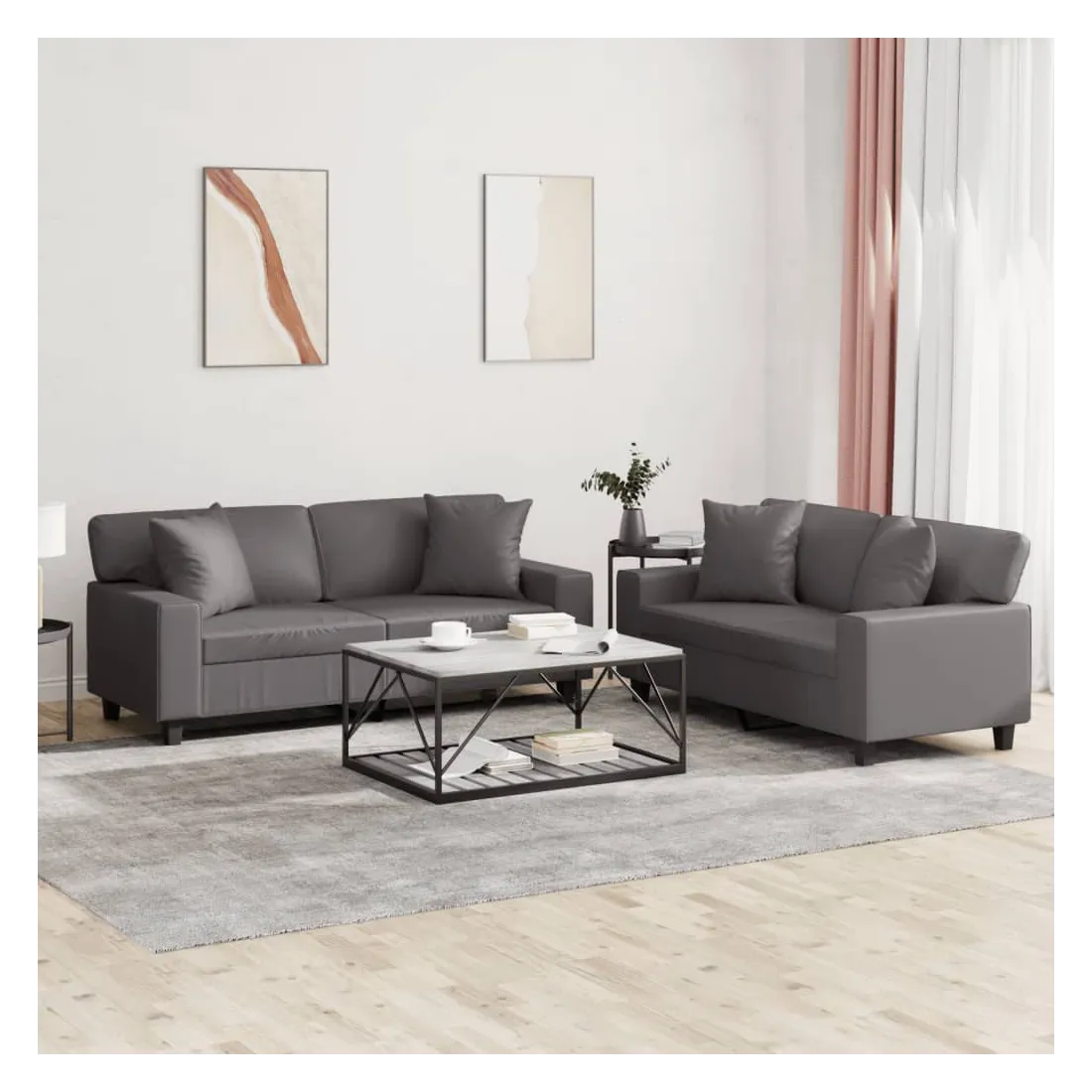 Cet ensemble de canapés est un excellent endroit pour discuter, lire, regarder la télévision ou simplement vous détendre. Il est destiné à être un point central de votre maison. Similicuir durable : le similicuir est un matériau très durable. Il est résistant aux taches, ce qui le rend facile à nettoyer avec un chiffon humide. La surface lisse donne également un aspect luxueux et la beauté du cuir véritable.Structure robuste et stable : la structure en contreplaqué et en métal du canapé assure robustesse et stabilité.Expérience d'assise confortable : le canapé est très confortable avec le siège, les accoudoirs et les oreillers de dossier bien rembourrés.Oreillers de canapé pratiques : ces oreillers décoratifs carrés non seulement embellissent votre décor mais ils peuvent également apporter un confort supplémentaire lorsque vous êtes assis ou allongé.