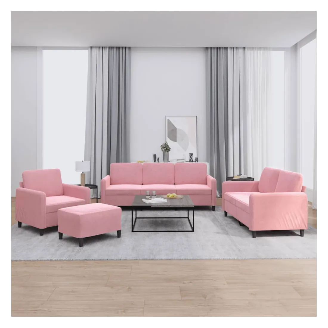 Cet ensemble de canapés est un excellent endroit pour discuter, lire, regarder la télévision ou simplement vous détendre. Il est destiné à être un point central de votre maison. Velours doux : le velours est un tissu doux et confortable, agréable au toucher.Structure robuste et stable : la structure en contreplaqué et en métal du canapé assure robustesse et stabilité.Expérience d'assise confortable : le canapé est très confortable avec le siège, les accoudoirs et les oreillers de dossier bien rembourrés.Pouf polyvalent : ce repose-pied convient pour reposer vos pieds lorsque vous êtes allongé dans un canapé ou pour vous offrir un siège supplémentaire dans votre pièce. De plus, le design simple et la taille compacte le rendent idéal pour presque tous vos espaces de vie.