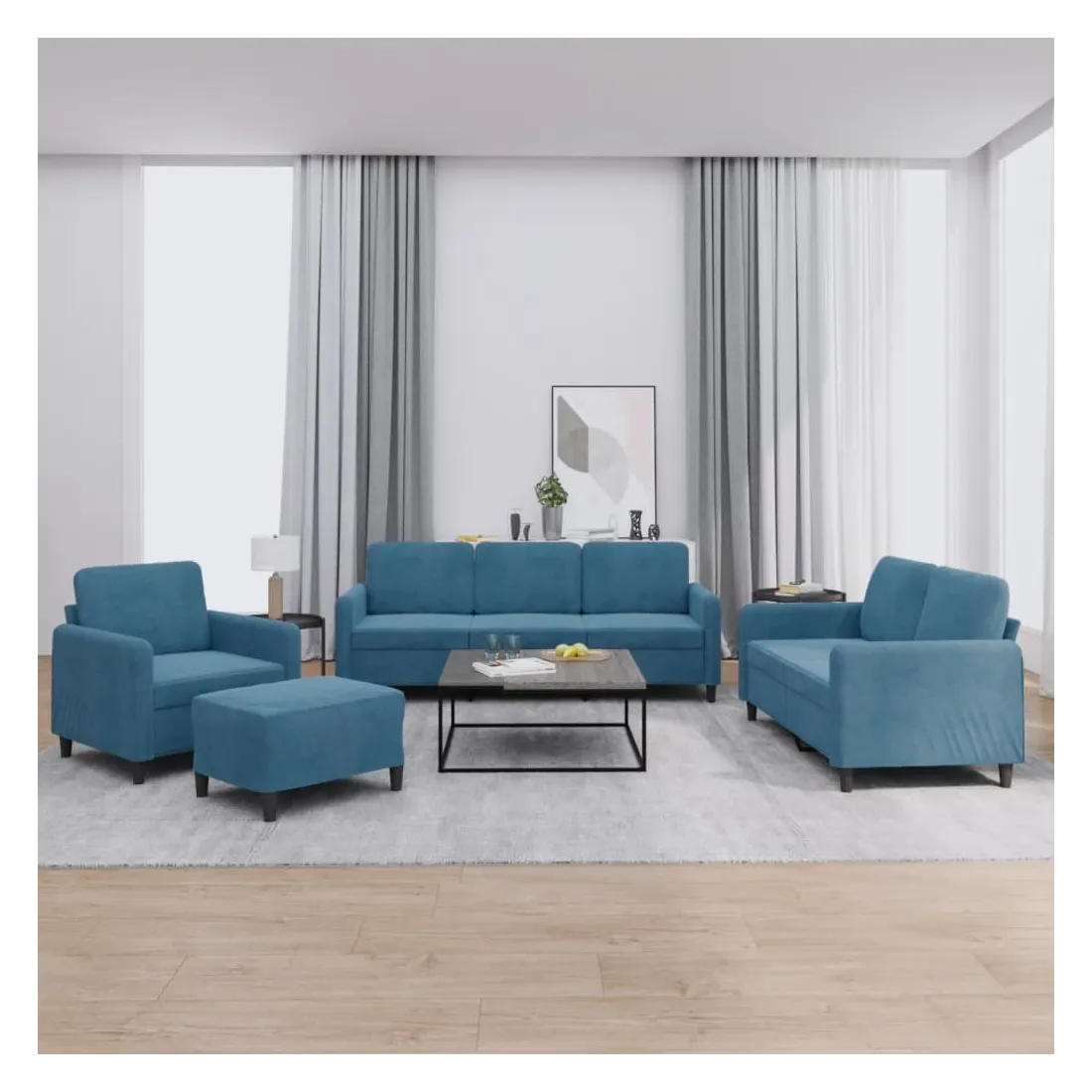 Cet ensemble de canapés est un excellent endroit pour discuter, lire, regarder la télévision ou simplement vous détendre. Il est destiné à être un point central de votre maison. Velours doux : le velours est un tissu doux et confortable, agréable au toucher.Structure robuste et stable : la structure en contreplaqué et en métal du canapé assure robustesse et stabilité.Expérience d'assise confortable : le canapé est très confortable avec le siège, les accoudoirs et les oreillers de dossier bien rembourrés.Pouf polyvalent : ce repose-pied convient pour reposer vos pieds lorsque vous êtes allongé dans un canapé ou pour vous offrir un siège supplémentaire dans votre pièce. De plus, le design simple et la taille compacte le rendent idéal pour presque tous vos espaces de vie.