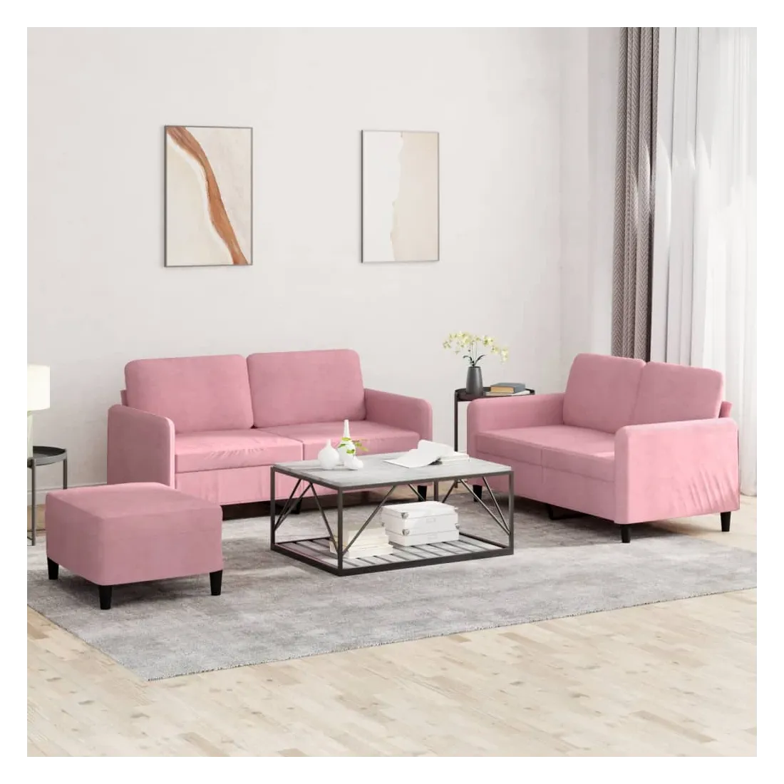 Cet ensemble de canapés est un excellent endroit pour discuter, lire, regarder la télévision ou simplement vous détendre. Il est destiné à être un point central de votre maison. Velours doux : le velours est un tissu doux et confortable, agréable au toucher.Structure robuste et stable : la structure en contreplaqué et en métal du canapé assure robustesse et stabilité.Expérience d'assise confortable : le canapé est très confortable avec le siège, les accoudoirs et les oreillers de dossier bien rembourrés.Pouf polyvalent : ce repose-pied convient pour reposer vos pieds lorsque vous êtes allongé dans un canapé ou pour vous offrir un siège supplémentaire dans votre pièce. De plus, le design simple et la taille compacte le rendent idéal pour presque tous vos espaces de vie.