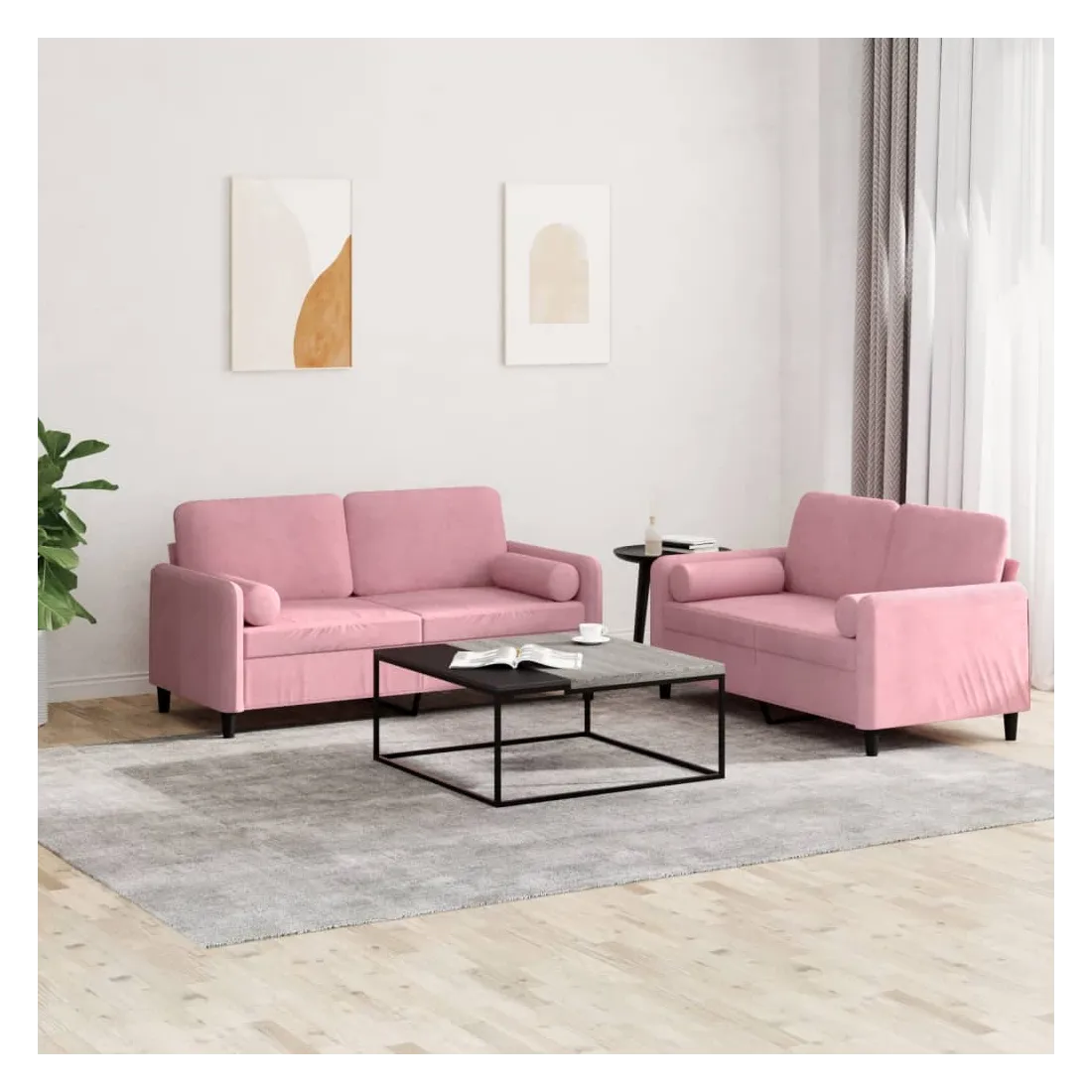 Cet ensemble de canapés est un excellent endroit pour discuter, lire, regarder la télévision ou simplement vous détendre. Il est destiné à être un point central de votre maison. Velours doux : le velours est un tissu doux et confortable, agréable au toucher.Structure robuste et stable : la structure en contreplaqué et en métal du canapé assure robustesse et stabilité.Expérience d'assise confortable : le canapé est très confortable avec le siège, les accoudoirs et les oreillers de dossier bien rembourrés.Oreillers cylindriques pratiques : ces oreillers cylindriques non seulement embellissent votre décor mais ils peuvent également apporter un confort supplémentaire lorsque vous êtes assis ou allongé.