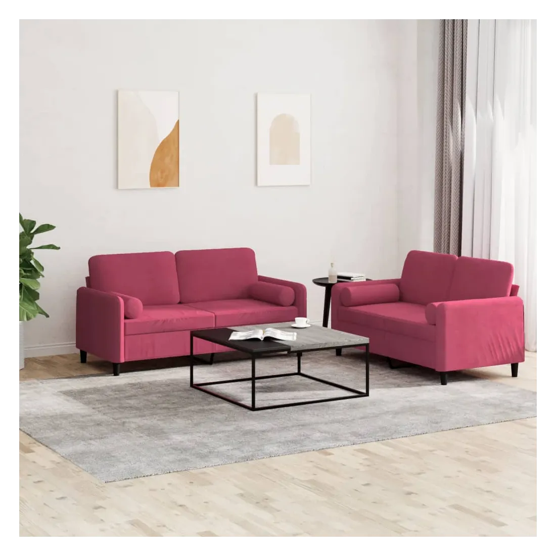 vidaXLCet ensemble de canapés est un excellent endroit pour discuter, lire, regarder la télévision ou simplement vous détendre. Il est destiné à être un point central de votre maison. Velours doux : le velours est un tissu doux et confortable, agréable au toucher.Structure robuste et stable : la structure en contreplaqué et en métal du canapé assure robustesse et stabilité.Expérience d'assise confortable : le canapé est très confortable avec le siège, les accoudoirs et les oreillers de dossier bien rembourrés.Oreillers cylindriques pratiques : ces oreillers cylindriques non seulement embellissent votre décor mais ils peuvent également apporter un confort supplémentaire lorsque vous êtes assis ou allongé.
