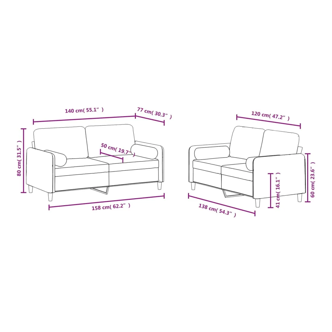 - Canapé à 2 places (140 cm) :