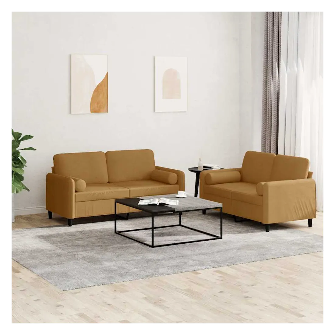 vidaXLCet ensemble de canapés est un excellent endroit pour discuter, lire, regarder la télévision ou simplement vous détendre. Il est destiné à être un point central de votre maison. Velours doux : le velours est un tissu doux et confortable, agréable au toucher.Structure robuste et stable : la structure en contreplaqué et en métal du canapé assure robustesse et stabilité.Expérience d'assise confortable : le canapé est très confortable avec le siège, les accoudoirs et les oreillers de dossier bien rembourrés.Oreillers cylindriques pratiques : ces oreillers cylindriques non seulement embellissent votre décor mais ils peuvent également apporter un confort supplémentaire lorsque vous êtes assis ou allongé.