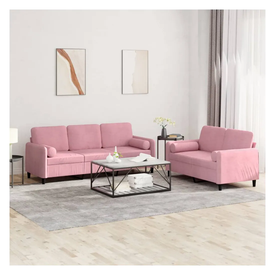 Cet ensemble de canapés est un excellent endroit pour discuter, lire, regarder la télévision ou simplement vous détendre. Il est destiné à être un point central de votre maison. Velours doux : le velours est un tissu doux et confortable, agréable au toucher.Structure robuste et stable : la structure en contreplaqué et en métal du canapé assure robustesse et stabilité.Expérience d'assise confortable : le canapé est très confortable avec le siège, les accoudoirs et les oreillers de dossier bien rembourrés.Oreillers cylindriques pratiques : ces oreillers cylindriques non seulement embellissent votre décor mais ils peuvent également apporter un confort supplémentaire lorsque vous êtes assis ou allongé.