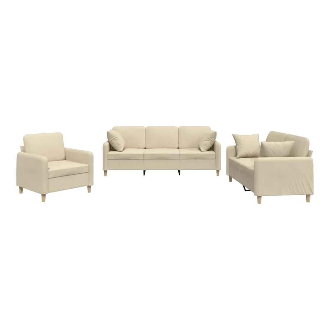 Cet ensemble de canapés est un excellent endroit pour discuter, lire, regarder la télévision ou simplement vous détendre. Il est destiné à être un point central de votre maison. Tissu durable : le tissu présente un aspect simple et épuré tout en restant respirant et durable.Structure robuste et stable : la structure en contreplaqué et en métal du canapé assure robustesse et stabilité.Expérience d'assise confortable : le canapé est très confortable avec le siège, les accoudoirs et les coussins de dossier bien rembourrés.Oreillers de canapé pratiques : ces oreillers décoratifs carrés non seulement embellissent votre décor mais ils peuvent également apporter un confort supplémentaire lorsque vous êtes assis ou allongé.