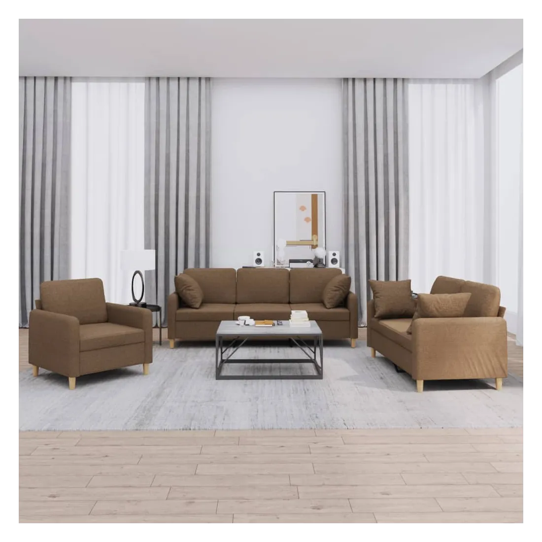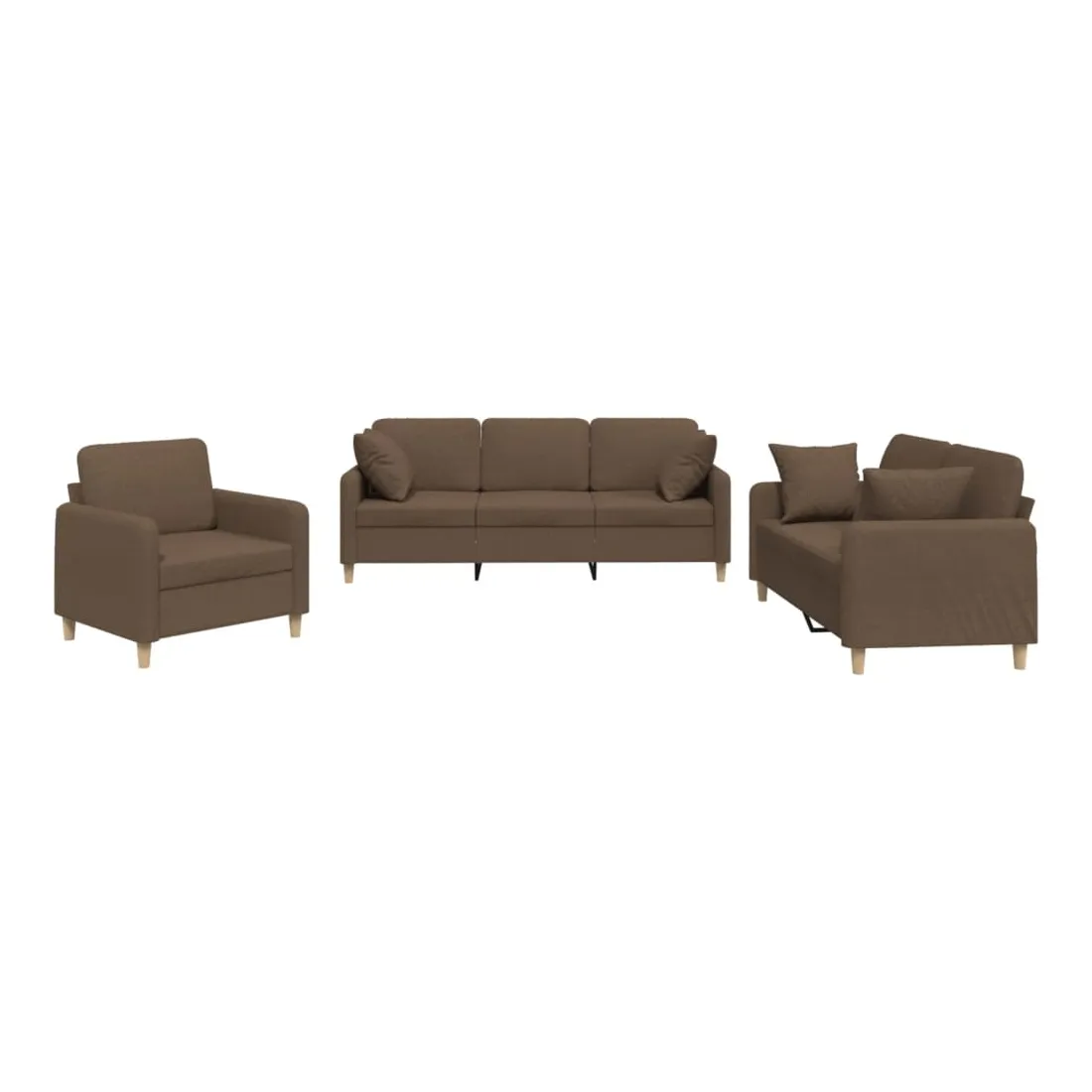Ensemble de canapés 3 pcs avec coussins marron tissu