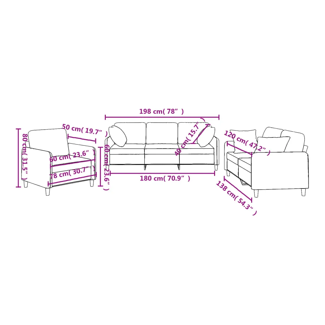 vidaXLCet ensemble de canapés est un excellent endroit pour discuter, lire, regarder la télévision ou simplement vous détendre. Il est destiné à être un point central de votre maison. Tissu durable : le tissu présente un aspect simple et épuré tout en restant respirant et durable.Structure robuste et stable : la structure en contreplaqué et en métal du canapé assure robustesse et stabilité.Expérience d'assise confortable : le canapé est très confortable avec le siège, les accoudoirs et les coussins de dossier bien rembourrés.Oreillers de canapé pratiques : ces oreillers décoratifs carrés non seulement embellissent votre décor mais ils peuvent également apporter un confort supplémentaire lorsque vous êtes assis ou allongé.