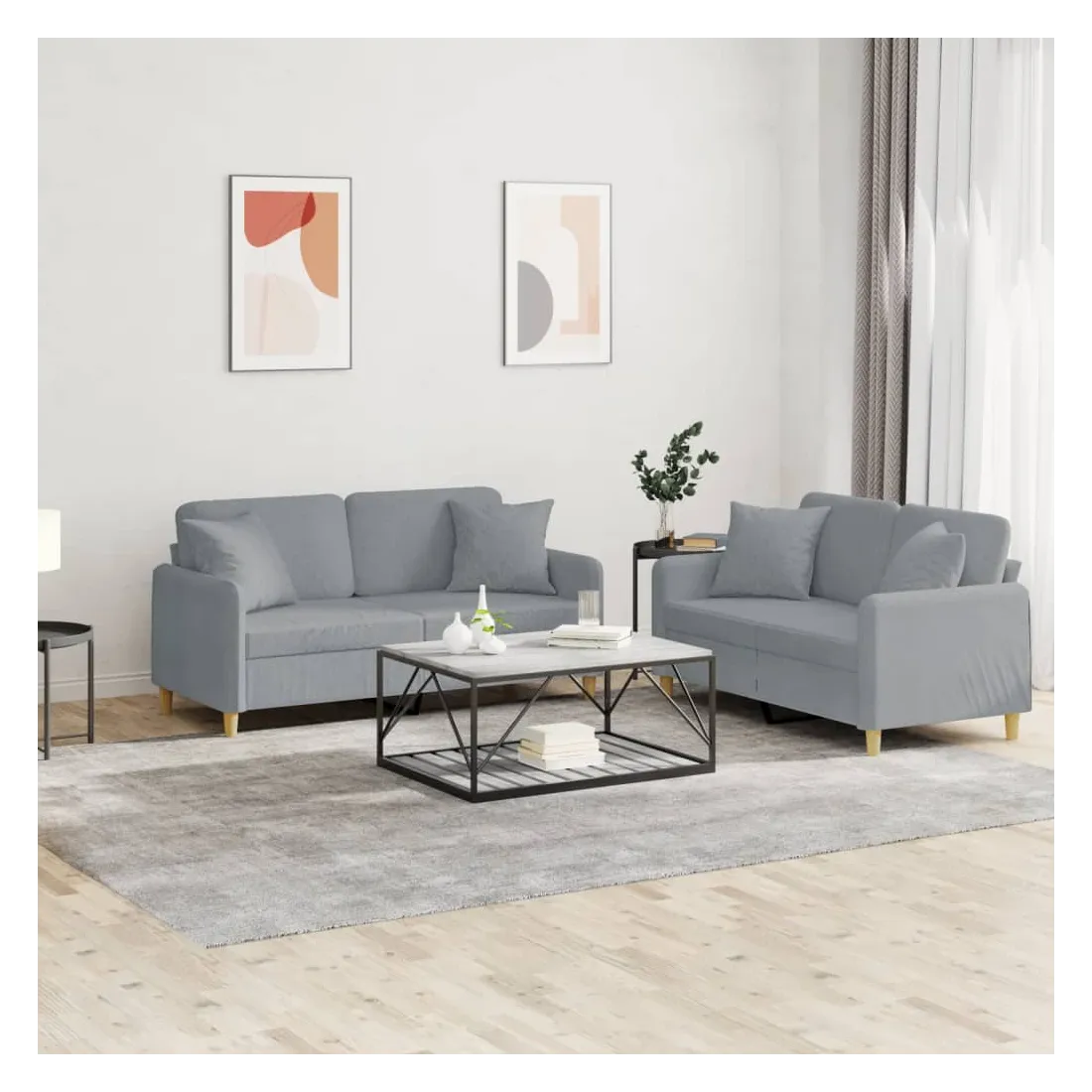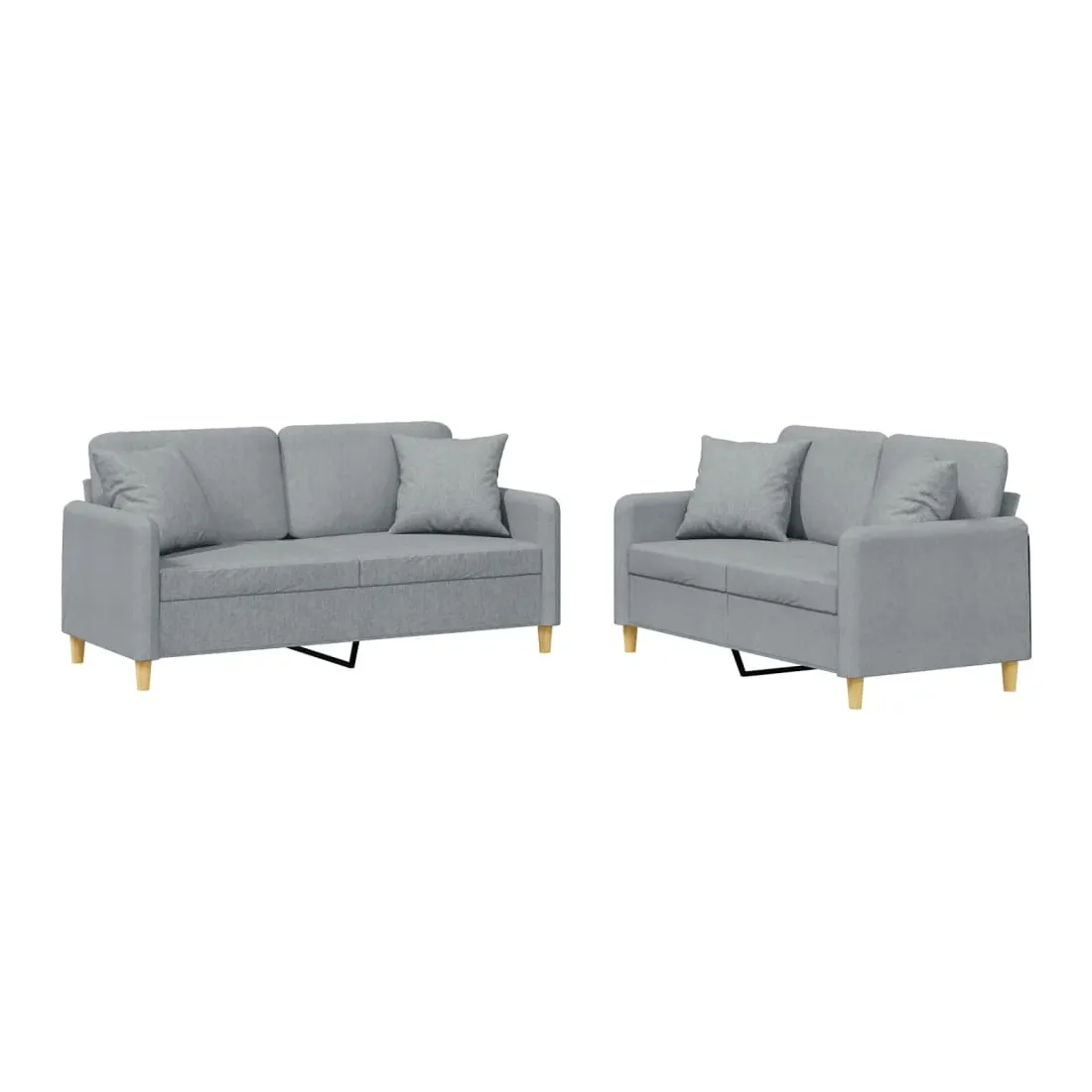 Cet ensemble de canapés est un excellent endroit pour discuter, lire, regarder la télévision ou simplement vous détendre. Il est destiné à être un point central de votre maison. Tissu durable : le tissu présente un aspect simple et épuré tout en restant respirant et durable.Structure robuste et stable : la structure en contreplaqué et en métal du canapé assure robustesse et stabilité.Expérience d'assise confortable : le canapé est très confortable avec le siège, les accoudoirs et les coussins de dossier bien rembourrés.Oreillers de canapé pratiques : ces oreillers décoratifs carrés non seulement embellissent votre décor mais ils peuvent également apporter un confort supplémentaire lorsque vous êtes assis ou allongé.