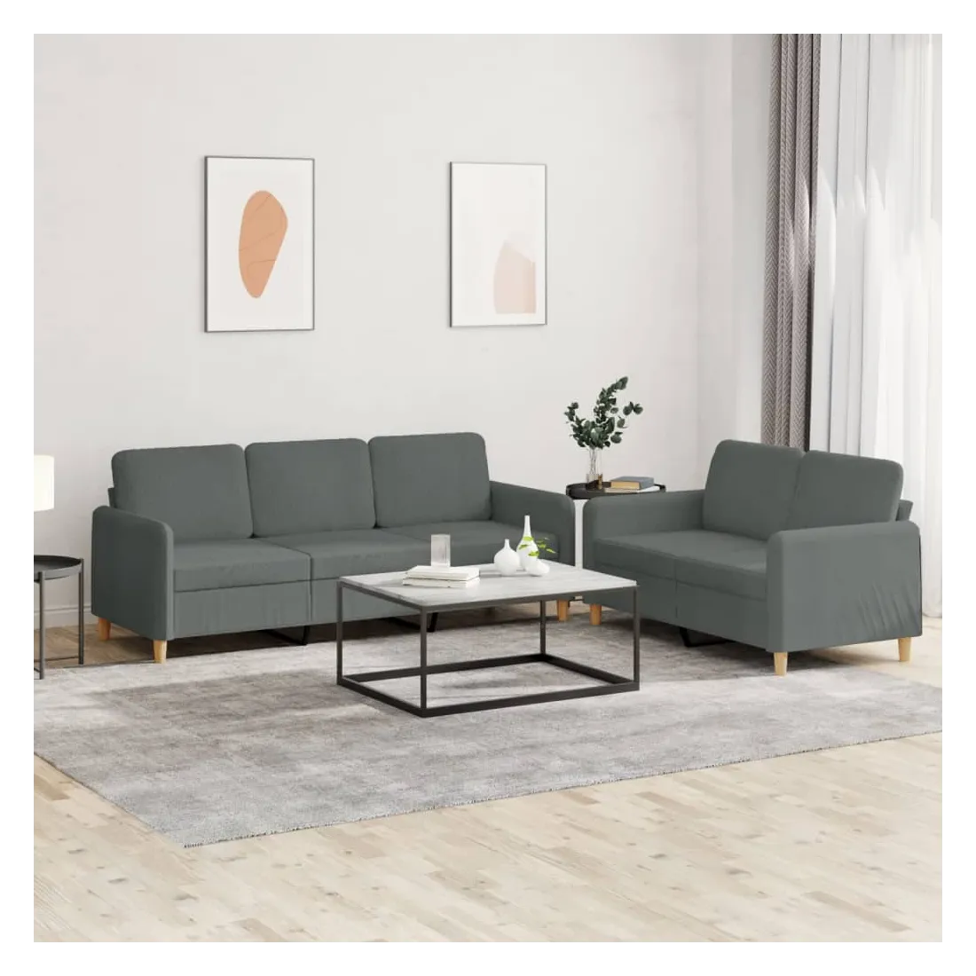 Cet ensemble de canapés est un excellent endroit pour discuter, lire, regarder la télévision ou simplement vous détendre. Il est destiné à être un point central de votre maison. Tissu durable : le tissu présente un aspect simple et épuré tout en restant respirant et durable.Structure robuste et stable : la structure en contreplaqué et en métal du canapé assure robustesse et stabilité.Expérience d'assise confortable : le canapé est très confortable avec le siège, les accoudoirs et les coussins de dossier bien rembourrés.