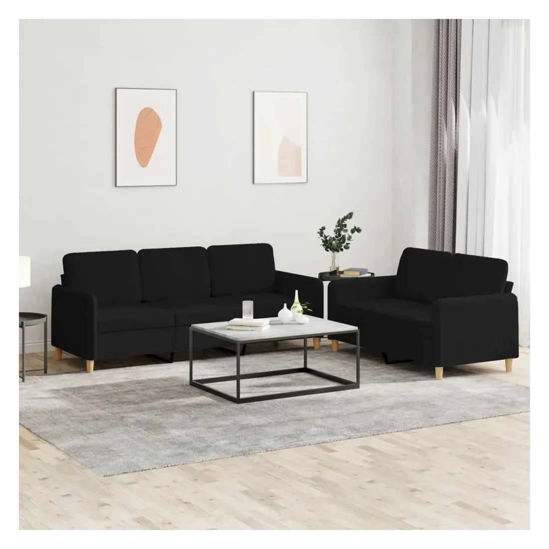 Cet ensemble de canapés est un excellent endroit pour discuter, lire, regarder la télévision ou simplement vous détendre. Il est destiné à être un point central de votre maison. Tissu durable : le tissu présente un aspect simple et épuré tout en restant respirant et durable. Structure robuste et stable : la structure en contreplaqué et en métal du canapé assure robustesse et stabilité. Expérience d'assise confortable : le canapé est très confortable avec le siège, les accoudoirs et les coussins de dossier bien rembourrés.